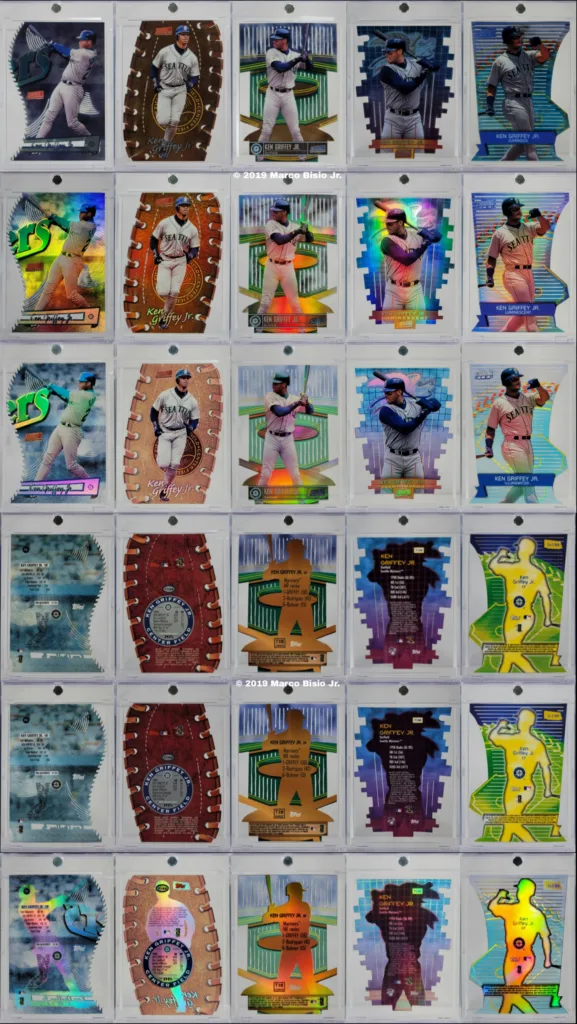 “At the end of 2002, that’s when I started collecting all those cards that I couldn’t afford,” Bisio says. “It was all those cards that I couldn’t buy in the ’90s. I was in college. I had a real job.” Picking up cards online opened up so more opportunities for Bisio to find big Griffey cards. By 2018, the collection had become truly massive.