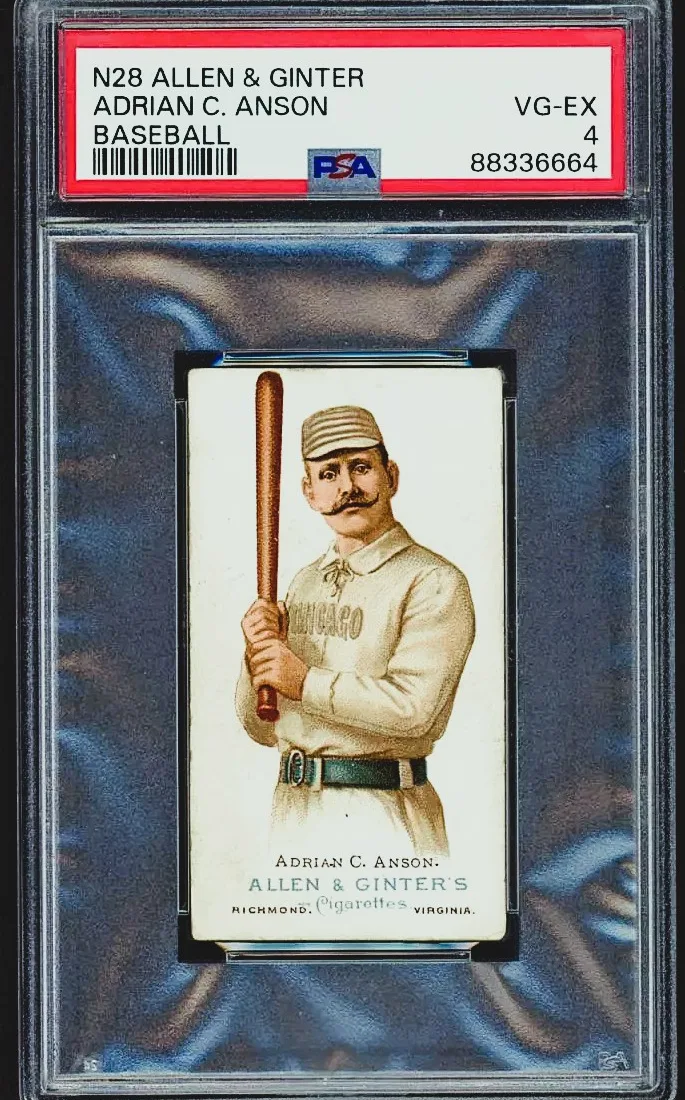 The majority of Whaley’s Allen & Ginter cards are raw, with about 20 being graded. He has his Cap Anson N28 card slabbed at a PSA 4.
