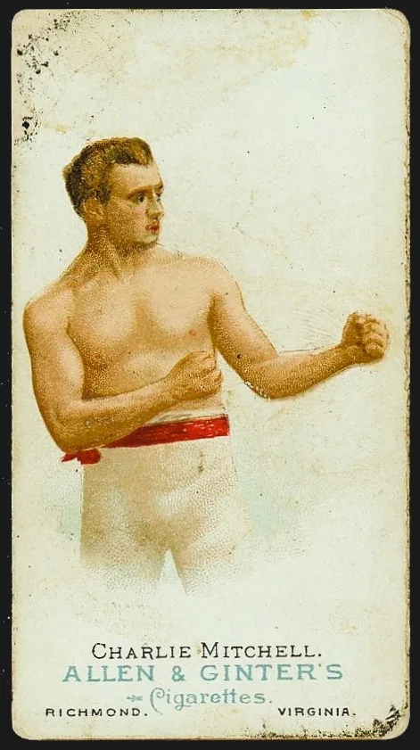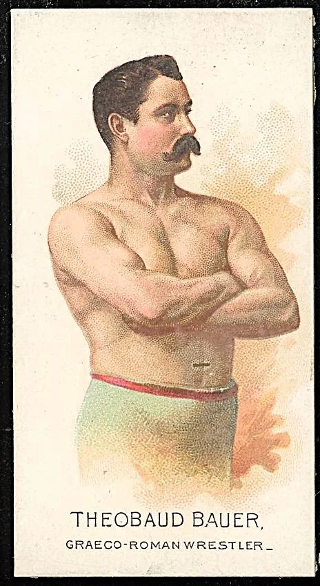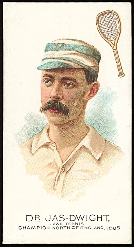 John L. Sullivan is a big name in the N28 set as well. The first heavyweight boxing champion of the world is pictured shirtless, showing off his biceps on his card. In the N29 set — which features six baseball cards, including Hall-of-Famer Buck Ewing — Whaley particularly enjoys the four lawn tennis player cards. “Some people think they’re the earliest tennis cards,” he explained.
