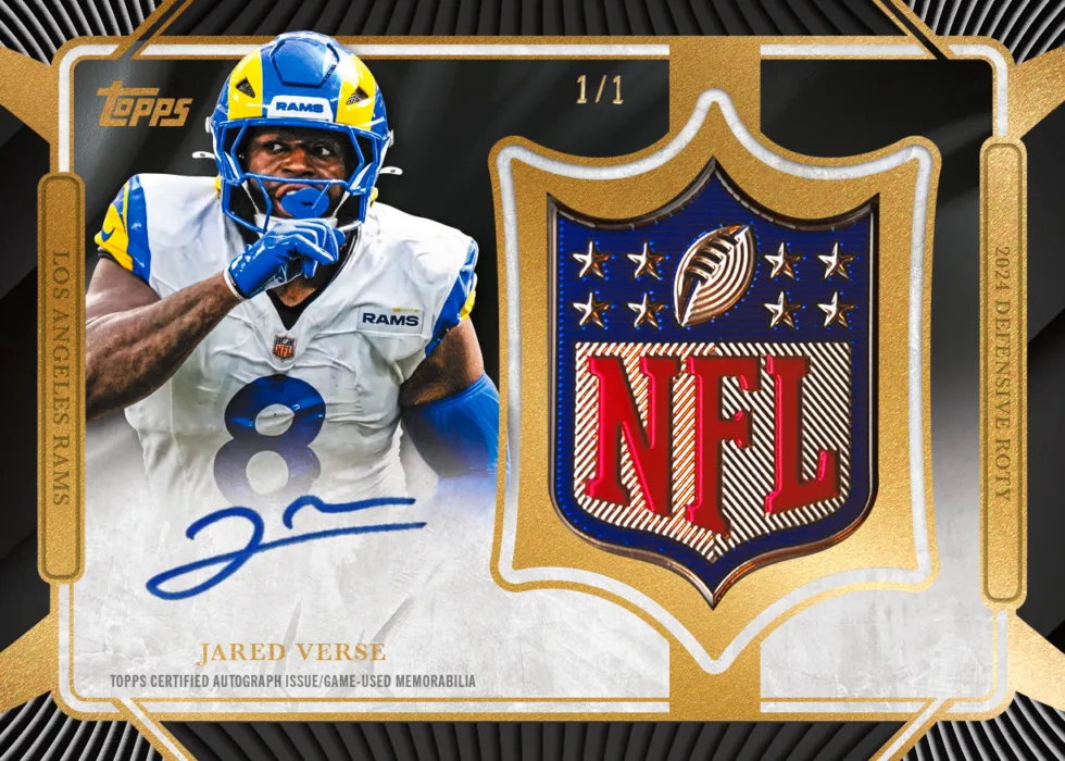 Die Gewinner der wichtigsten NFL-Auszeichnungen 2024 trugen diese besonderen Gold-Shields während der NFL-Saison 2025 auf ihren Trikots – und genau diese wurden nun in diese seltenen, geschichtsträchtigen Karten integriert.