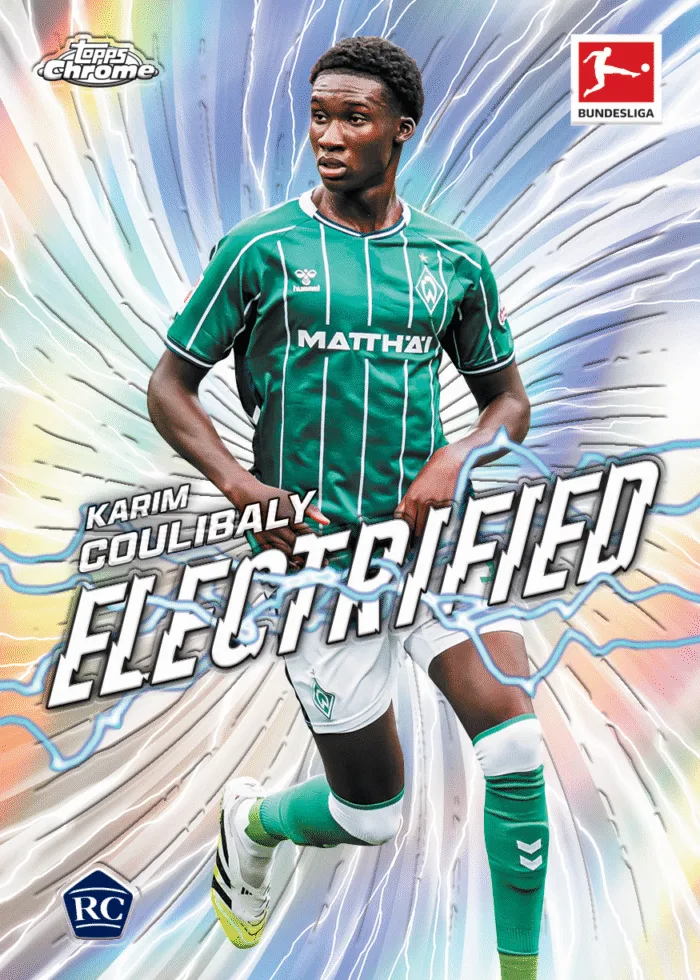 Die Kollektion verbindet Premium-Chromium-Technologie mit der Energie der Bundesliga. Jede Karte glänzt durch das typische Chrome-Finish und hebt Spieler mit starken Designs und hochwertigen Materialien hervor.