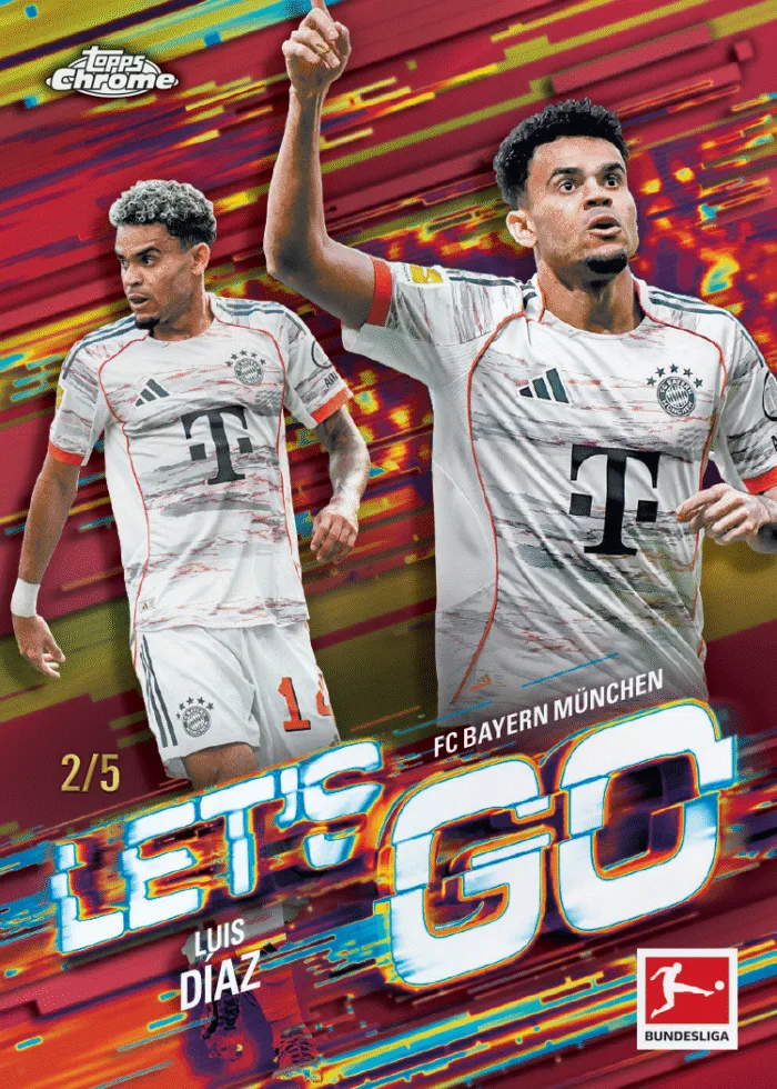 Mit Bundesliga Topps Chrome® 2025/26 kehrt eine der beliebtesten Premium-Serien des Hobbys zurück – größer, mutiger und sammelwürdiger als je zuvor. Die neue Ausgabe bringt eine Kombination aus ikonischen Chrome-Designs, seltenen Parallels, spektakulären Inserts und einer starken Rookie-Klasse zusammen.