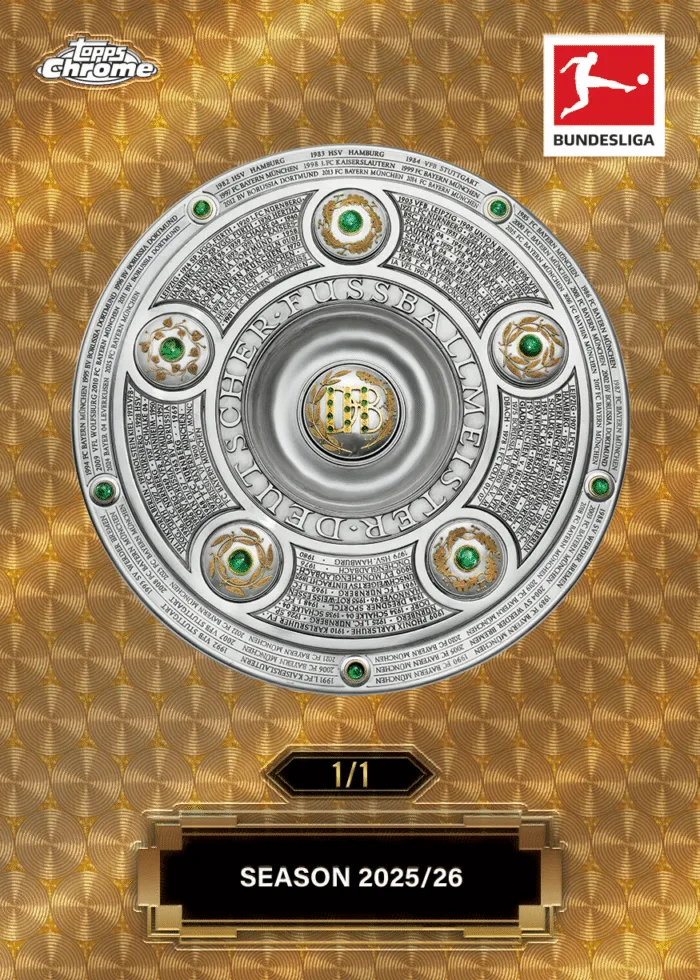 Mit Chrome-Glanz, kreativen Inserts und ikonischen Bundesliga-Momenten bringt diese Kollektion das Herz des deutschen Fußballs direkt in deine Sammlung.