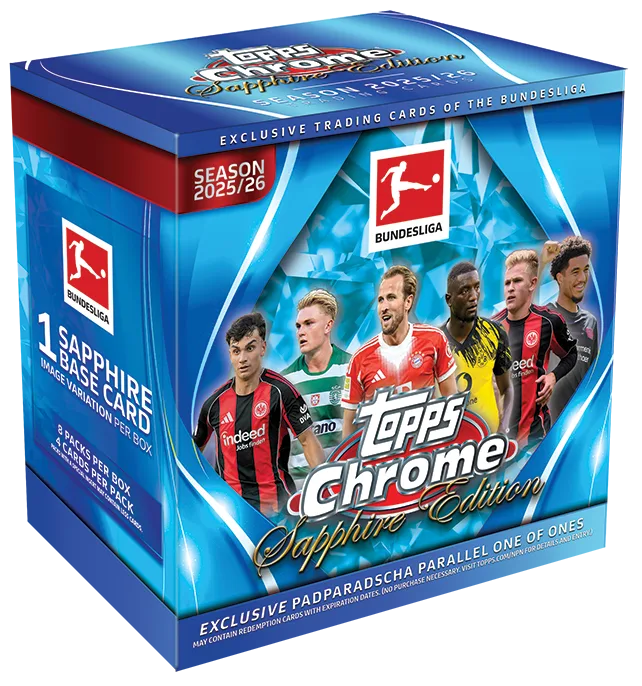 Mit Bundesliga Topps Chrome® Sapphire 2025/26 erreicht Chrome ein neues Premium-Level. Die Sapphire Edition steht seit Jahren für Exklusivität, klares Design und kompromisslose Seltenheit – und bringt genau diesen Ansatz jetzt erneut in die Bundesliga.