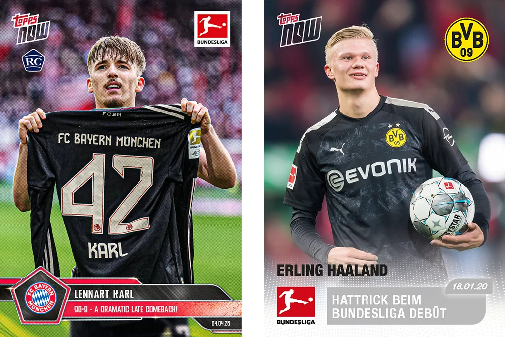 Topps NOW® Karten halten reale Momente genau dann fest, wenn sie passieren. Sie sind nur für kurze Zeit verfügbar und werden nach Bestelleingang produziert. Die Auflage jeder Karte wird im Anschluss bekannt gegeben – so weißt du genau, wie selten sie ist. Ist der Drop vorbei, ist er vorbei.