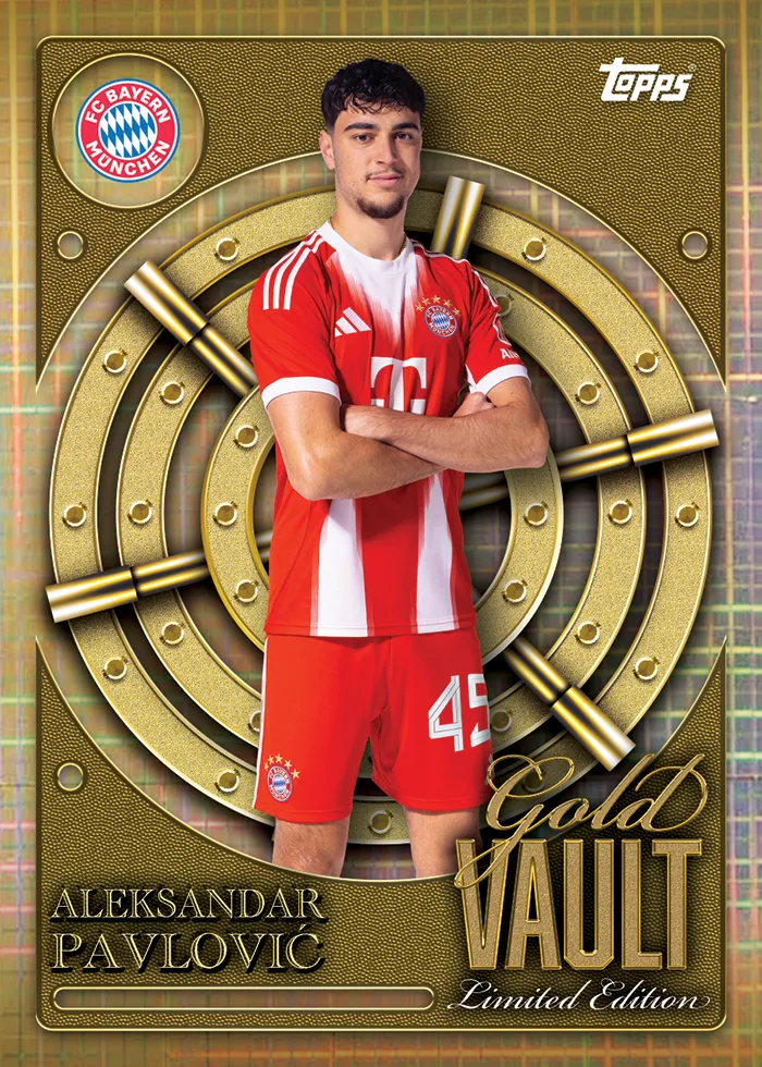 - 3x Gold Vault Limited Editions: Karten mit Goldfolie, z. B. von Minjae Kim, Dayot Upamecano, Tom Bischof oder Luis Díaz