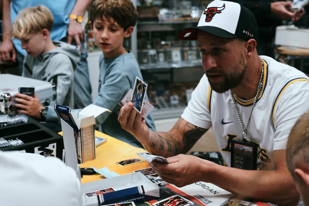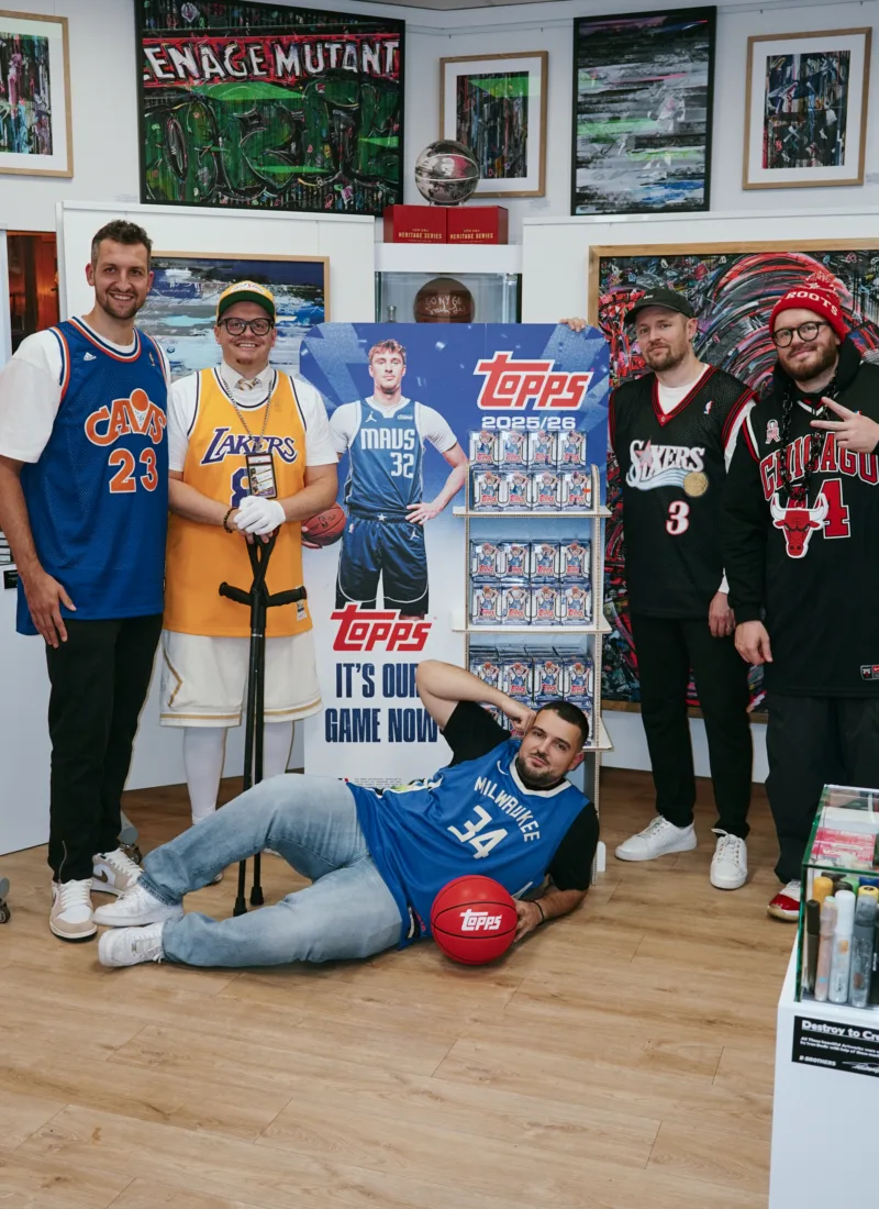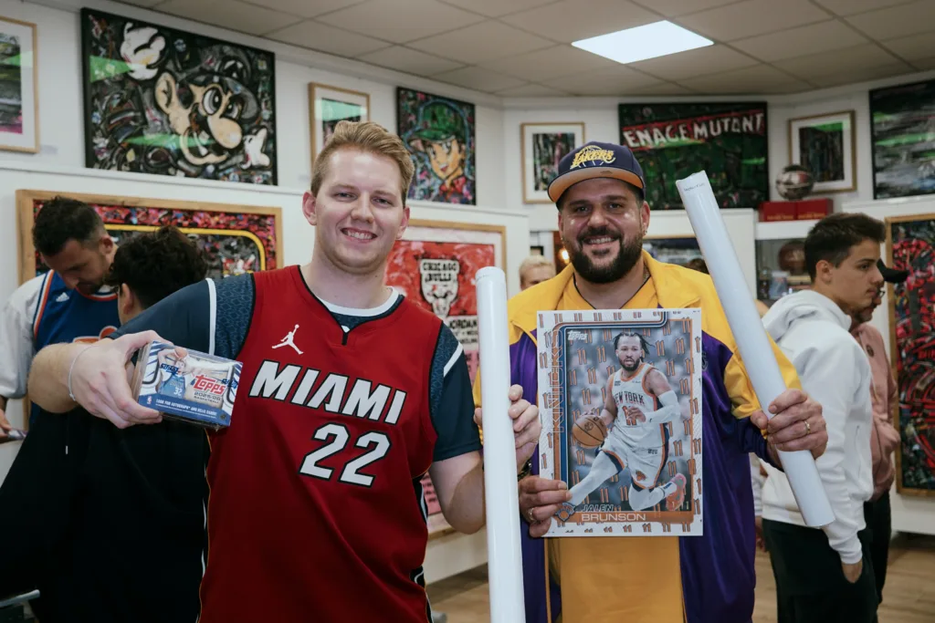Das Topps-Basketball-Sammelfieber zeigte sich auch bei dem kürzlichen Launch-Event in Langenfeld. Dort kamen neben Zipser und C-Bas hunderte Sammler und Basketball-Fans aus ganz Europa zusammen. Kiki Beslić, Europas führender Kobe-Bryant-Sammler, gab dem Event gemeinsam mit seinem Bruder in deren B-Brothers Store eine Bühne: „Der Vibe war der Hammer! Wir versuchen, das Hobby bestmöglich auf unsere Art für junge und erfahrene Sammler zu präsentieren – und beim Release hat einfach alles gepasst: Neuer Saisonstart, Topps hat nach 16 Jahren wieder lizensierte Basketball-Produkte am Start und alle haben gefeiert.“ Zwischen den neuen NBA-Karten, Trikots, Verlosungen und Quizzes gab es auch Live-Breaks mit Dennis Böker, in der Sammlerszene bekannt als Dennis the Ripper, einem Group Breaker mit eigenem Online-Kartenshop. Er schließt das erfolgreiche Topps-NBA-Release passend ab: „Die Fans sind auf der Suche nach On-Card-Autogrammen und Worn Patches. Sie sehnen sich nach LeBron James, Wemby und Co. als Unterschrift mit Lizenz. Das liefert nun mal nur Topps.“