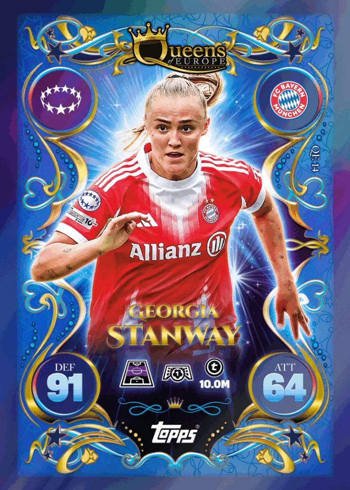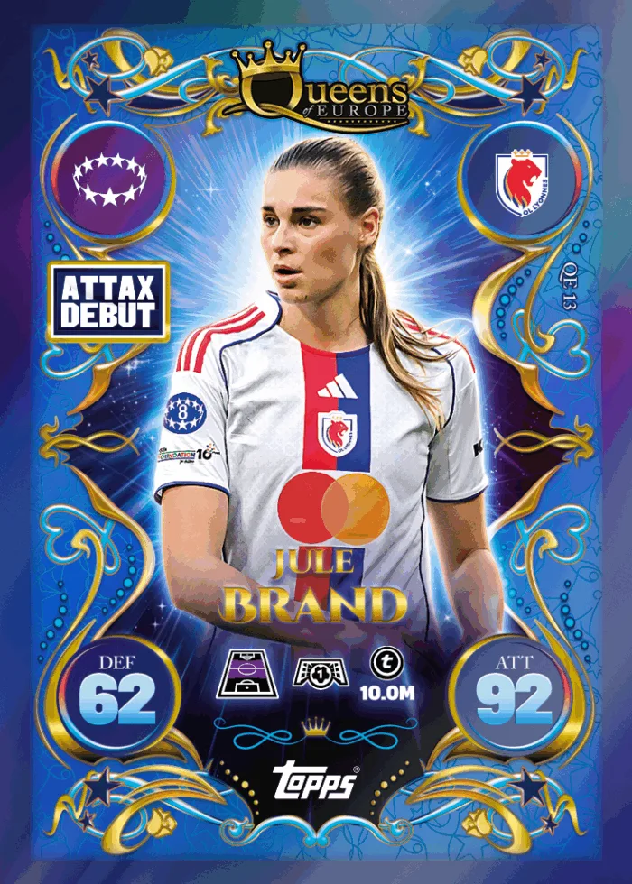 Das Queens of Europe Update erscheint am 15. Januar 2026 und ist als spezielles Update für die laufende Match Attax Saison konzipiert. Im Zentrum stehen 16 exklusive Rainbow-Foil-Karten, die herausragende Spielerinnen aus ganz Europa ehren: