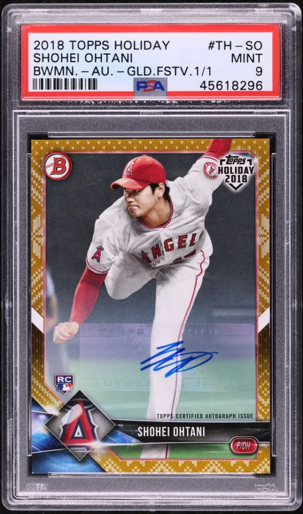 For coming on a decade now, Topps Holiday sets have become staples, including early cards of some of the current Kings of The Hobby. This PSA 9 2018 Topps Holiday Bowman Gold Festive Shohei Ohtani Auto RC 1/1 sold for over $25,000 in March 2025 through Fanatics Collect.