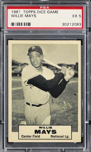 In December 2025, a PSA 5 version of the 1961 Topps Dice Game Willie Mays sold at auction for a record $156,000. It’s one of just 35 cards from the set, actually intended for a 1963 release, that have been authenticated or graded. Those include four Mays cards. A Mickey Mantle PSA 1 sold in 2022 for $396,000. A higher-graded PSA 6 Mays from the dice game sold in 2014 for just $31,000, indicating a growing interest in these rarities over the last decade.