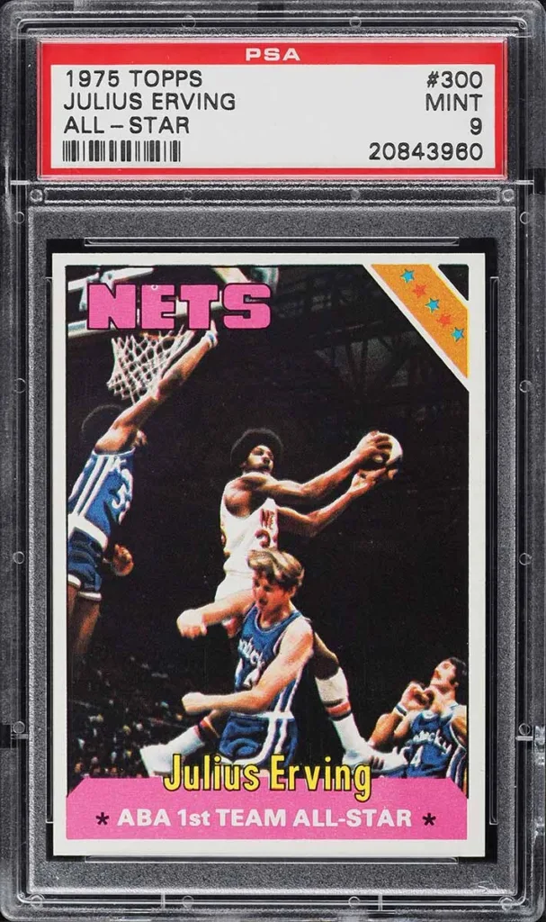 A top 20 all-time player on the floor and a huge piece of the vintage hardwood Hobby, Erving is a great choice to center a vintage Nets’ collection around.