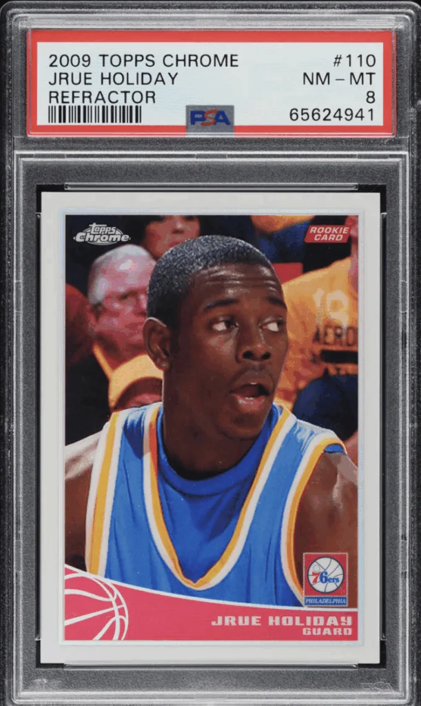 Giannis teamed up with Jrue Holiday, Kris Middleton, and Brook Lopez to lead Milwaukee to its first title in half a century, and all of his running mates are here for the chasing as well, with solid options including Topps Chrome refractor RC’s of Holiday and Lopez. A BGS 9 version of Holiday’s 2009 Topps Chrome RC numbered to 999 sold for $70 in March 2025.