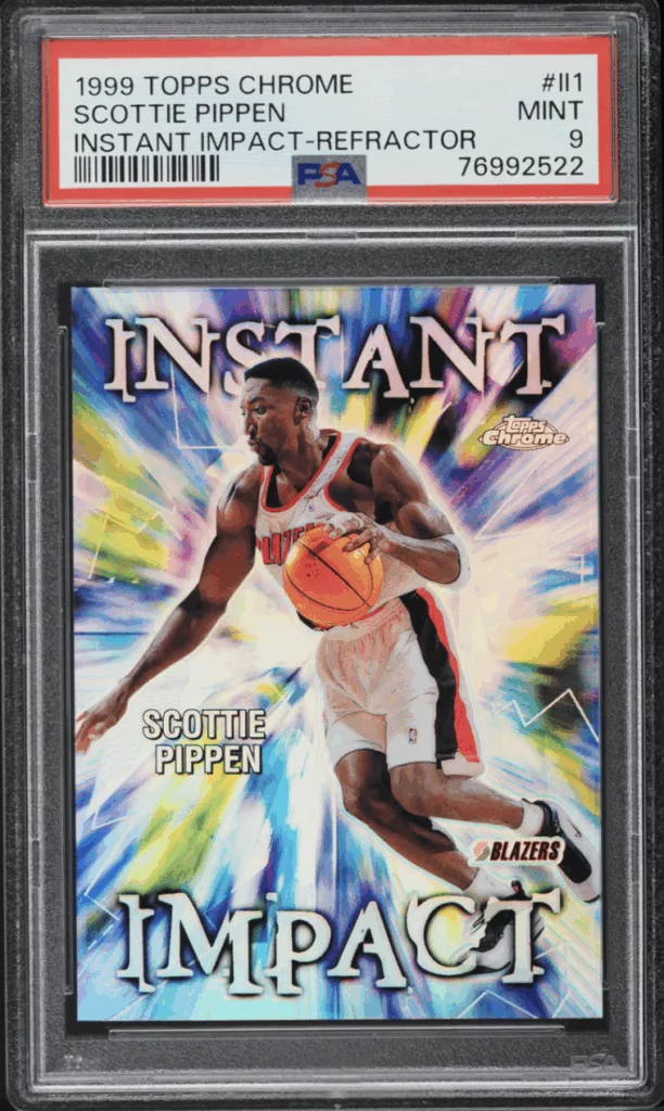 While legend Scottie Pippen made his name in Chicago, there are a number of cards from his stay in Portland for collectors to look for, including this fittingly named Instant Impact card from 1999 Topps Chrome.