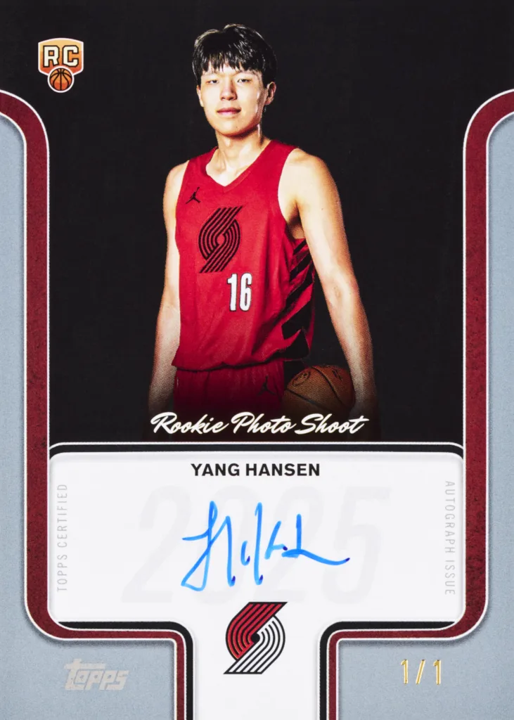 Portland shocked the NBA by drafting relatively unknown Chinese big man prospect Yang Hansen with the 16th overall pick. Hansen’s Summer League and preseason performances have the league abuzz, and his rising popularity in China make him a fascinating rookie for collectors to consider. Look for Hansen in Class of 25. A variety of auto and relic cards are also there to be chased this year.