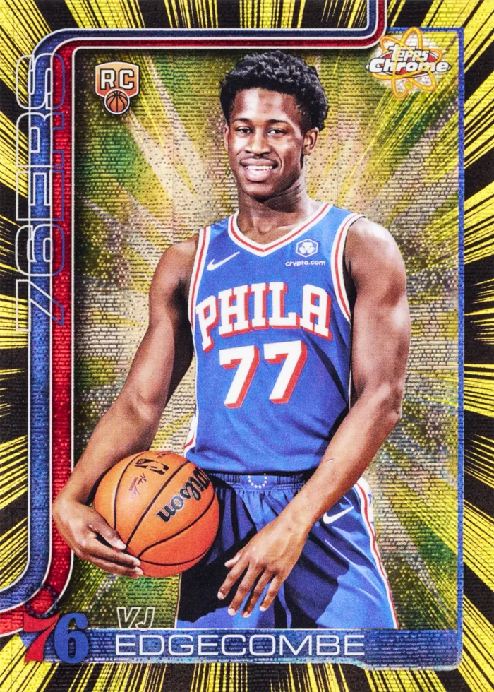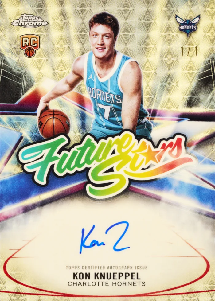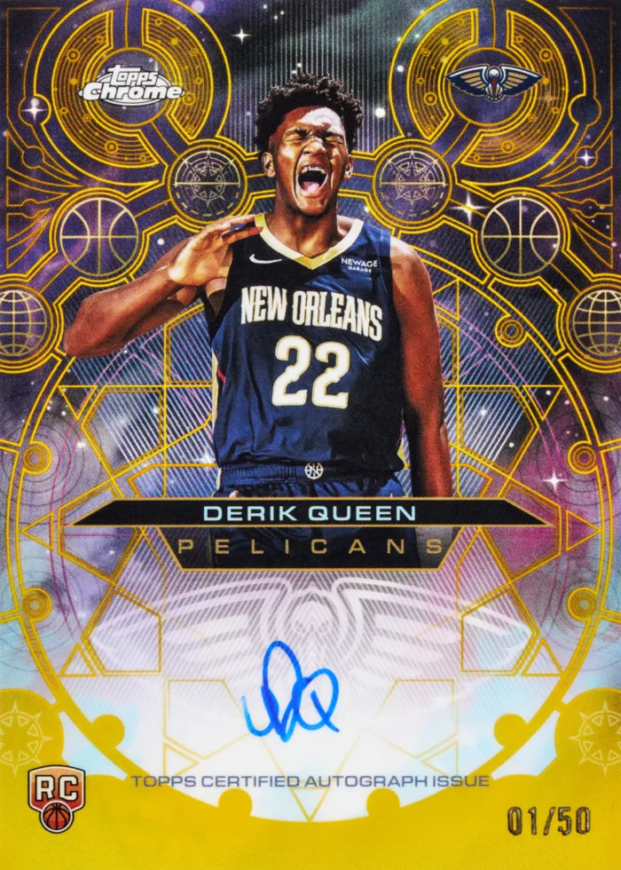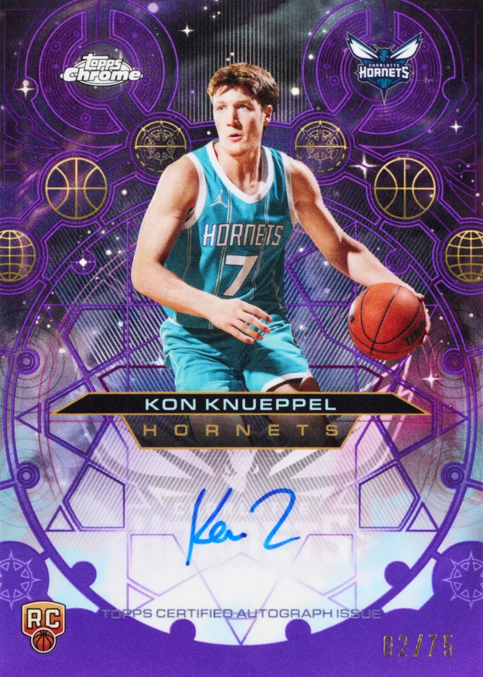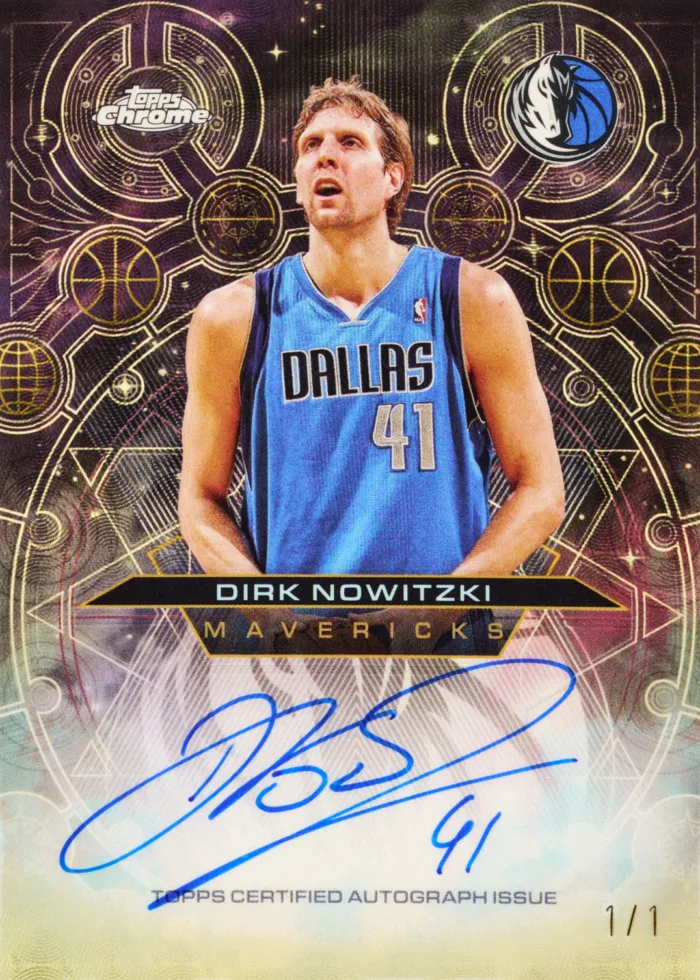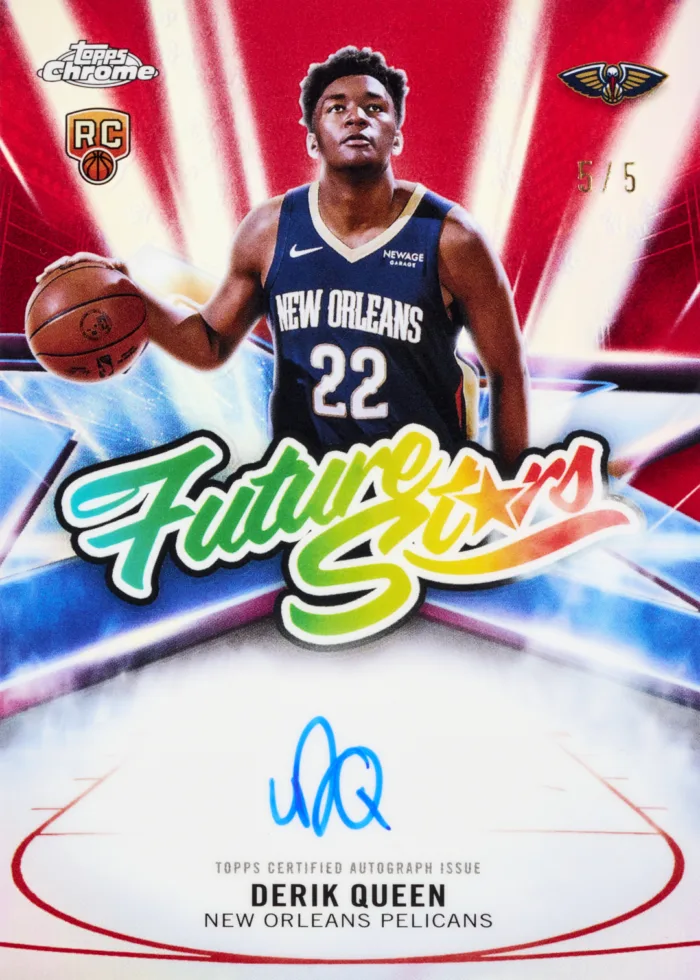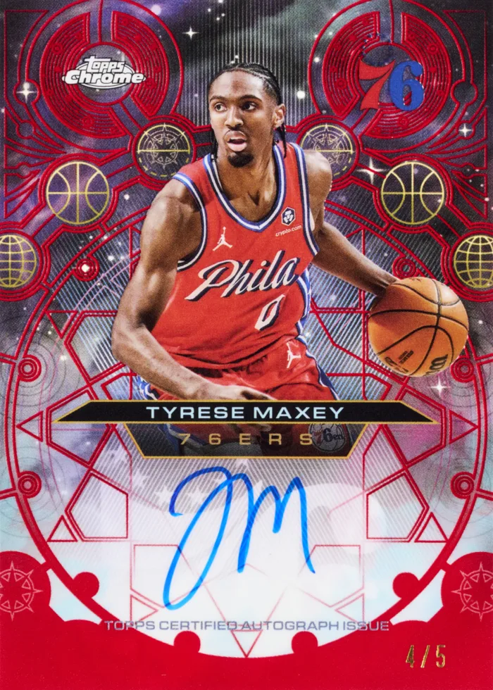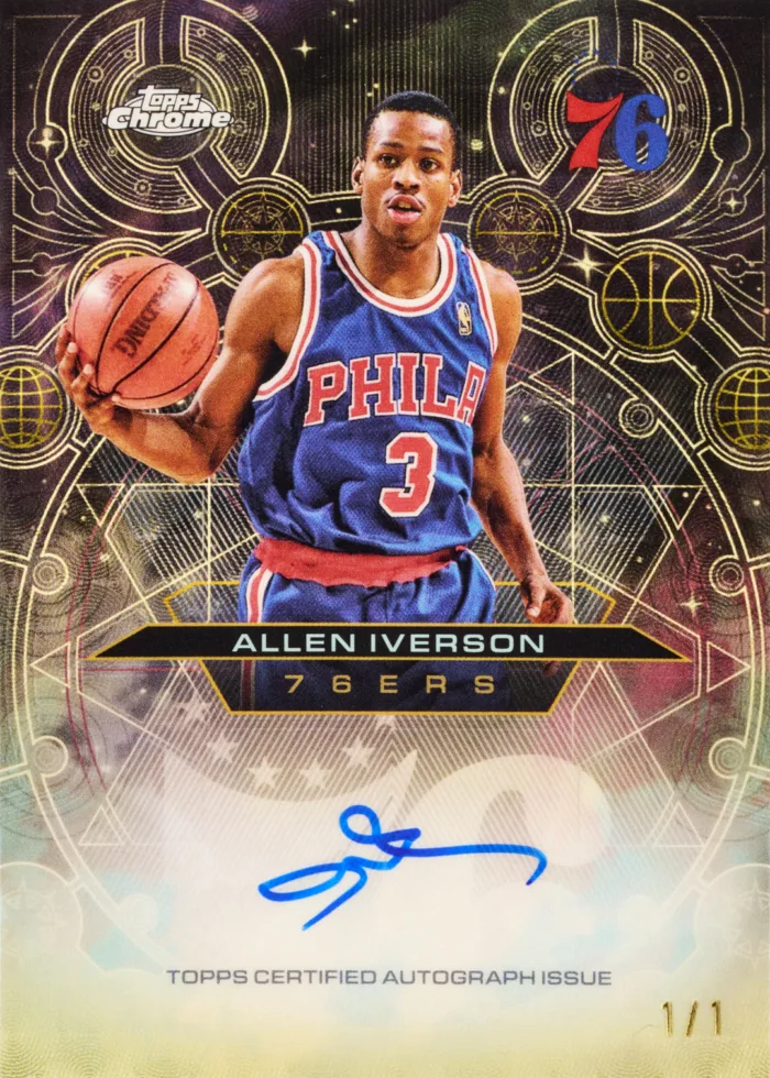 Both Futuristic and Ageless, Chromographs plays on the notion of future circuitry and ancient illustration. From rising star Tyrese Maxey, to intriguing rookies Kon Knueppel and Derik Queen, to legends like Allen Iverson and Dirk Nowitzki, Chromographs gives collectors the chance to chase cards that truly jump out of the hand.