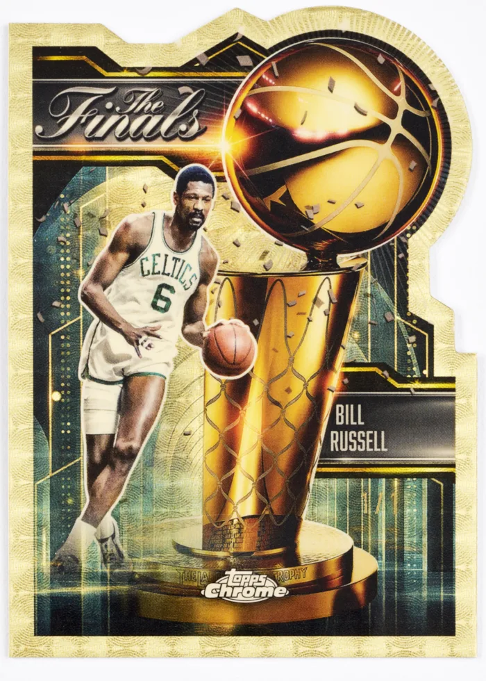This debut insert is 10 cards deep, and it features some of the most popular players from the NBA’s biggest stage, including 2024-25 Finals MVP Shai Gilgeous-Alexander, four-time champion LeBron James, and the legendary Bill Russell, for whom the Finals MVP was named.