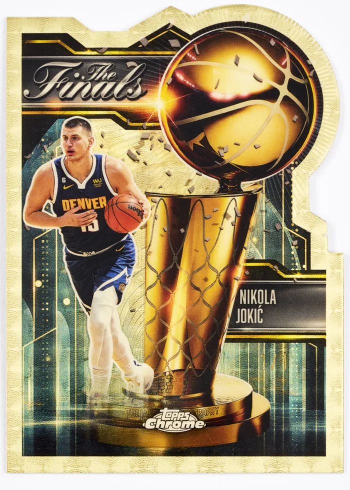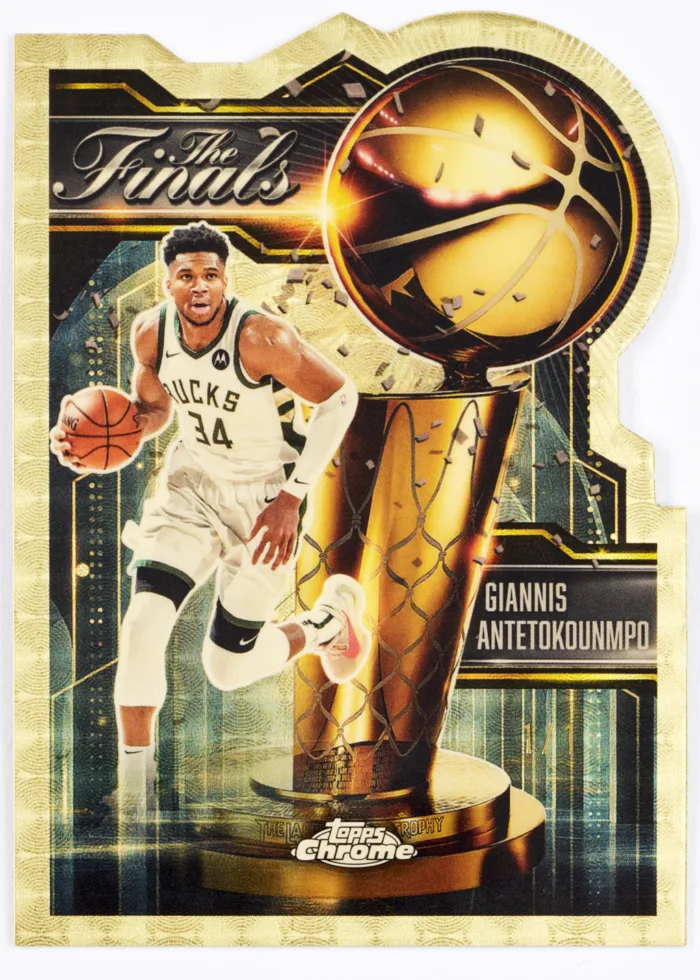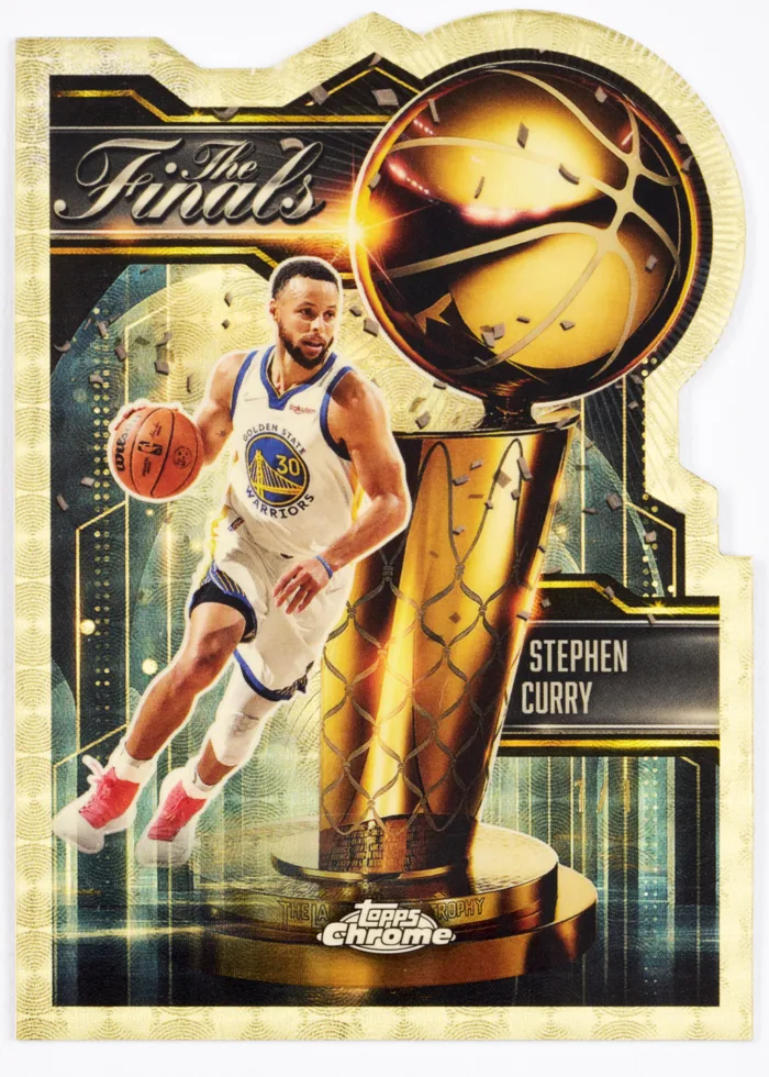 Finals is a new set featuring the Larry O’Brien trophy and a die-cut design. All players in the checklist are NBA Champions. While this insert can be found across both Hobby and Retail, the cards won’t be easily found, as this is one of the shortest print sets in Topps Chrome.