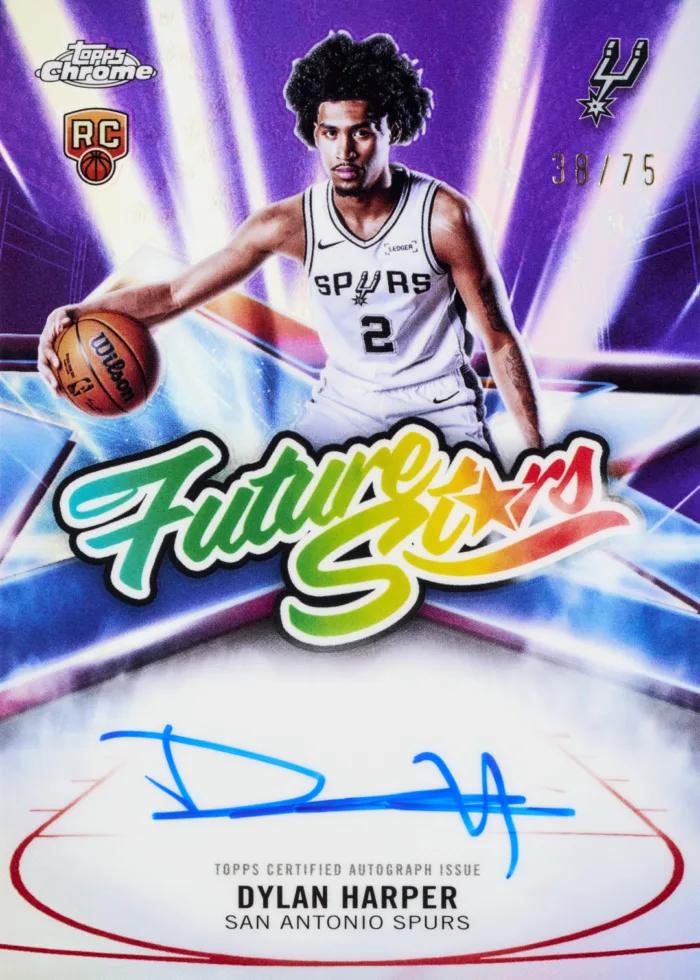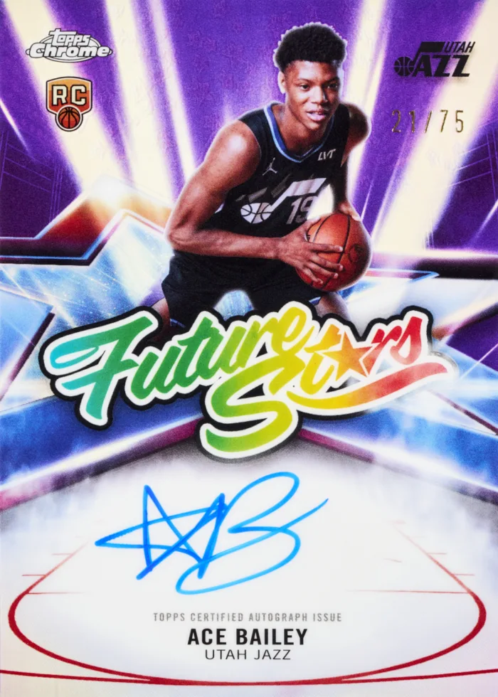 This retro design bridges the iconic past of Future Stars with the exciting future that lies ahead for the 2025 rookie class, headlined by the likes of Cooper Flagg and Ace Bailey. Look for Future Stars Autographs in all Retail configurations. Numbered to /99, /50, /25, /10, /5, and 1/1.