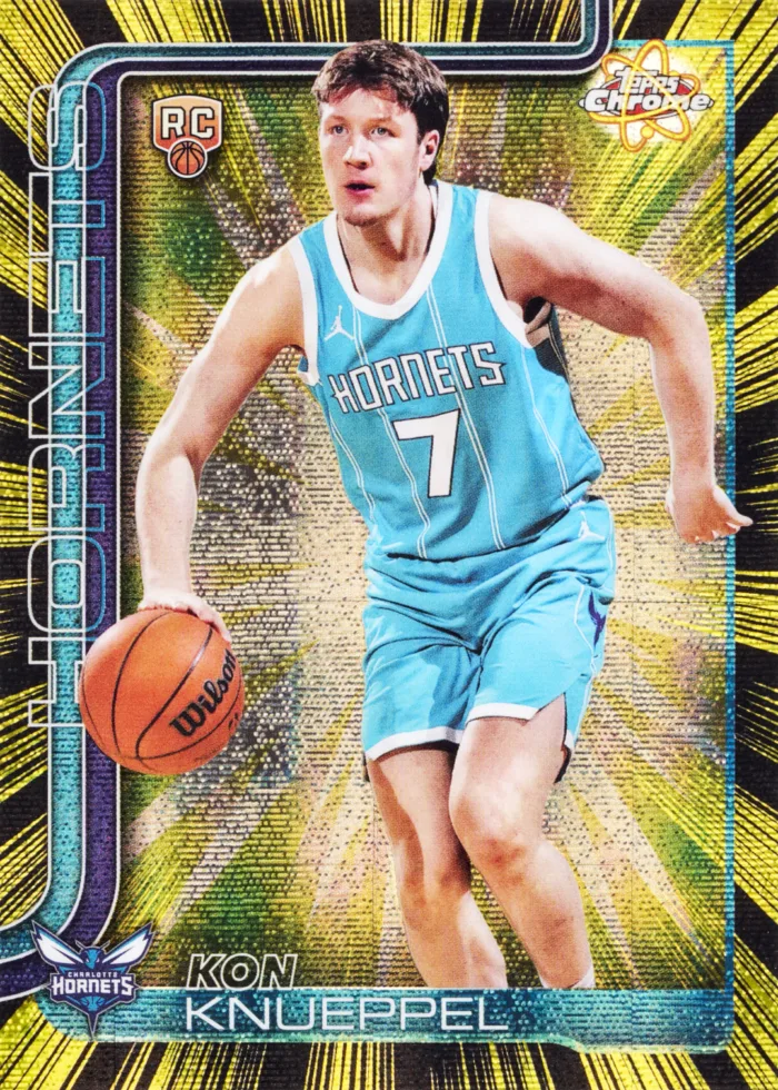 With a deep checklist variety and a stunning rainbow of parallel designs, the 2025–26 Topps Chrome Basketball base set delivers something for every kind of collector — from set builders and team chasers to Hobby veterans looking for that one-of-one centerpiece.