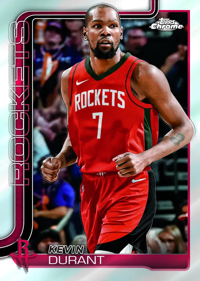 Who To Chase: A star-studded rookie class includes Cooper Flagg, Dylan Harper, Ace Bailey, Kon Kneuppel, and Yang Hansen. Superstars LeBron James, Nikola Jokić, Steph Curry, Giannis Antetokounmpo, Victor Wembanyma, and Shai Gilgeous-Alexander are there to be chased as well. Plus, hunt down Kevin Durant’s first-ever Houston Rockets auto card.