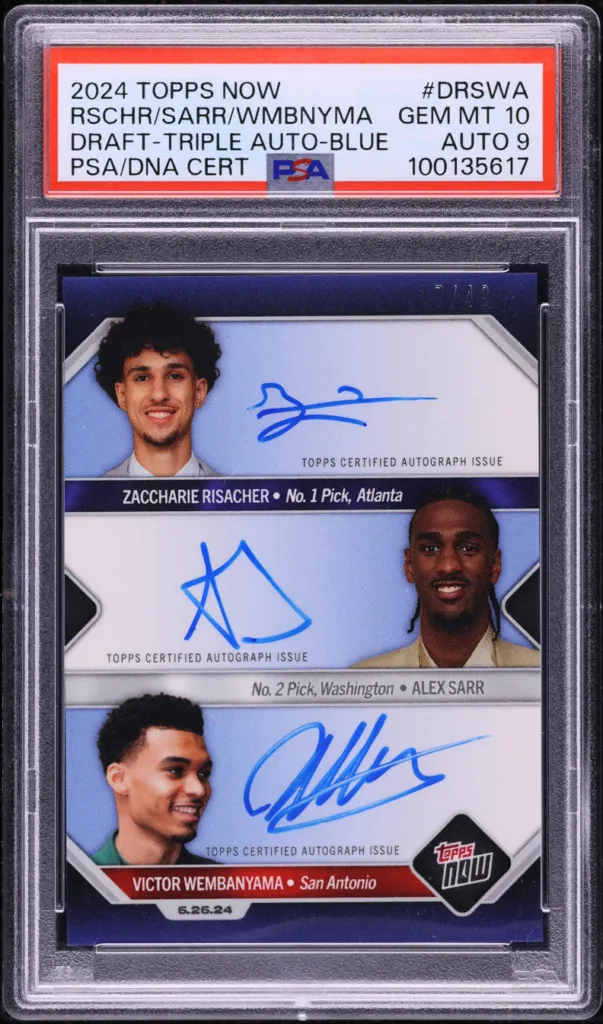 Today, an exciting young core is emerging in the nation’s capital, led by 20-year-old Alex Sarr and 2025 lottery pick Tre Johnson. Sarr is part of a unique triple card released by Topps NOW® last season, featuring the stars of the NBA’s French Invasion, with Sarr alongside superstar Victor Wembanyama and 2024 ROY runner-up Zaccharie Risacher.