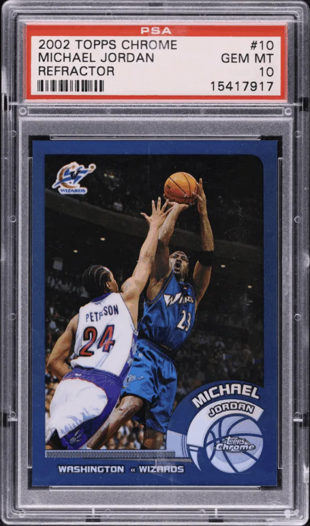 - MJ’s 2001 Chrome cards mark his Wizards comeback.