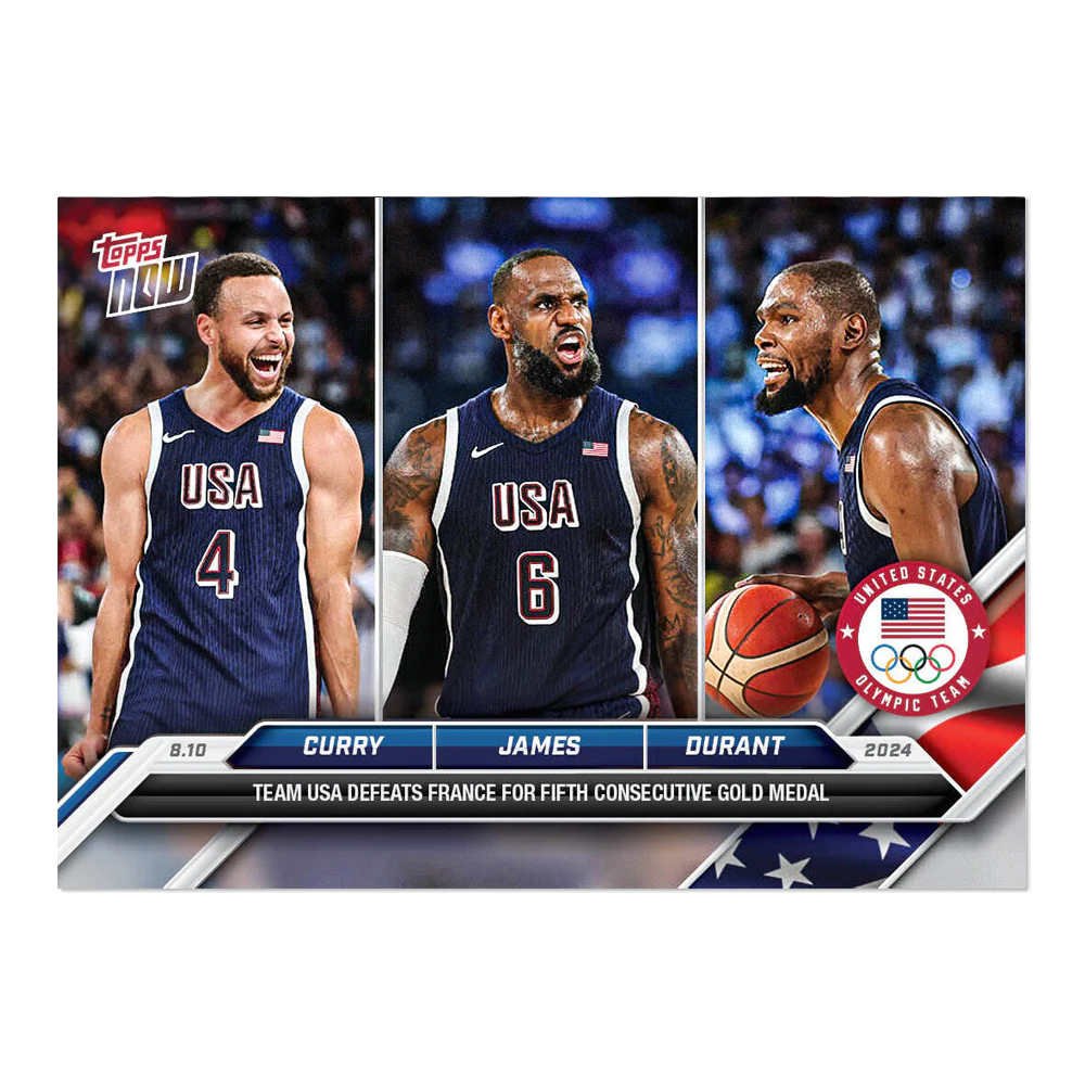 • The generation-defining card captures three of the best players of all-time on the court and in the hobby, as they led Team USA to gold in the 2024 Paris Olympics