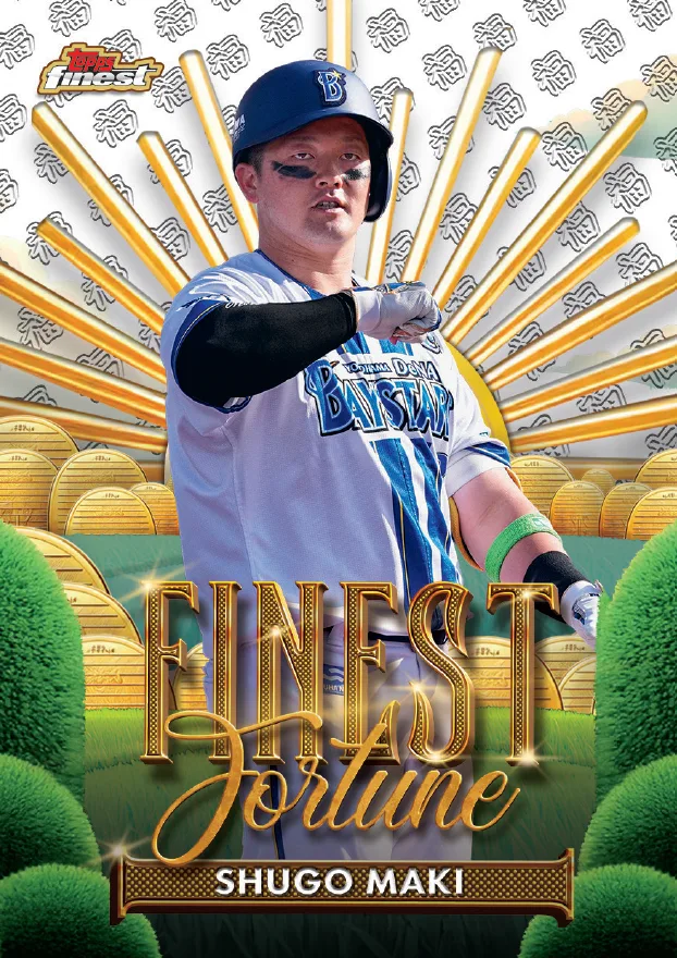 日本文化から着想を得て、『福』の文字に小判のデザインを組み合わせたTopps 初登場のインサート。Topps NPBシリーズ初登場となるファイネストに華を添える、日本らしい特別な1枚。
