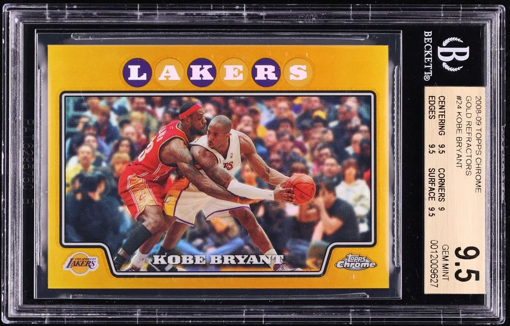 - Kobe’s 2008 Topps Chrome Basketball card featuring LeBron James remains highly sought-after