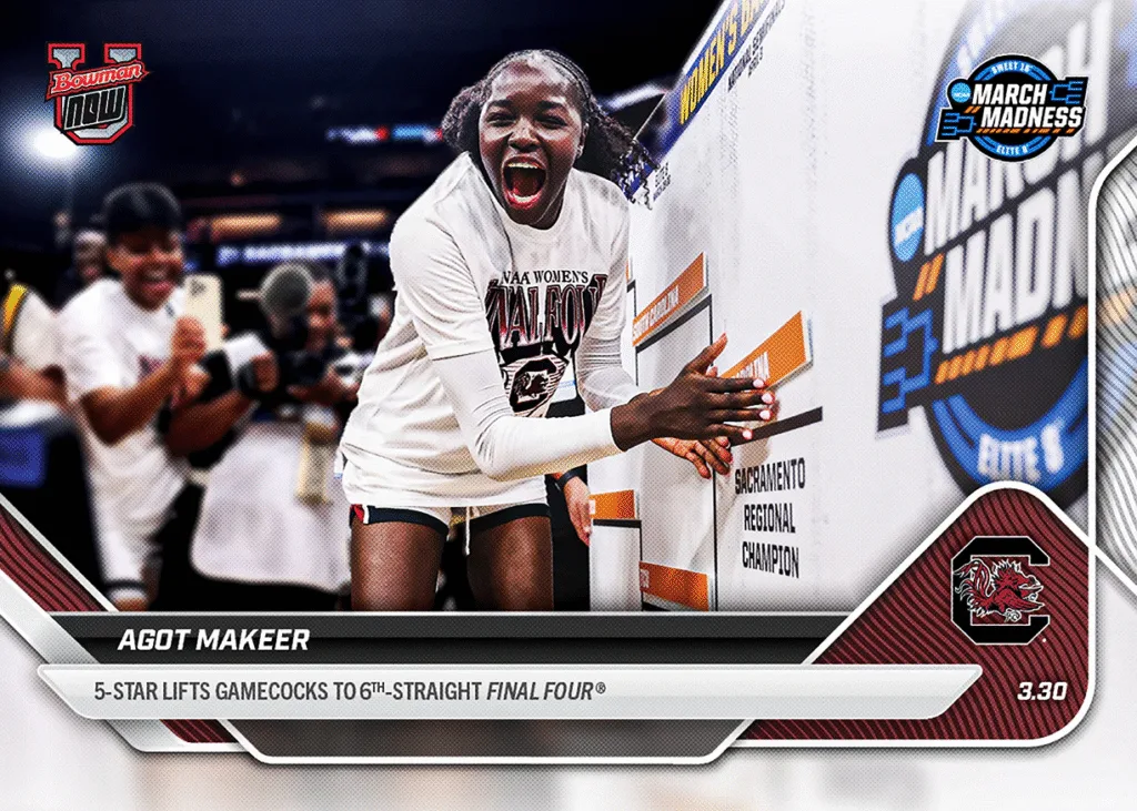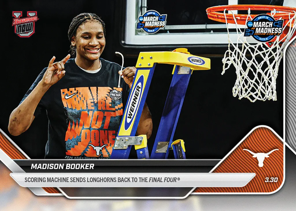 Bowman U NOW March Madness cards deliver the biggest moments of the men’s and women’s tournaments, from game-winners to Final Four berths. Collectors can order during a limited print window on Topps.com.