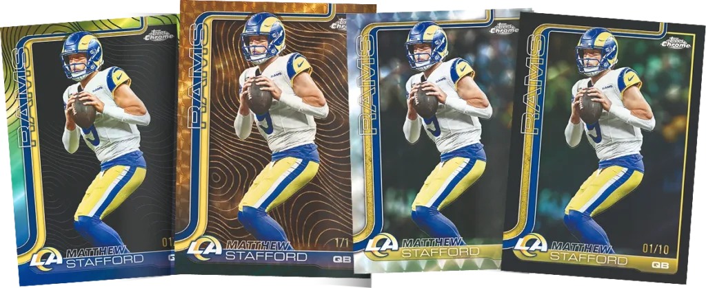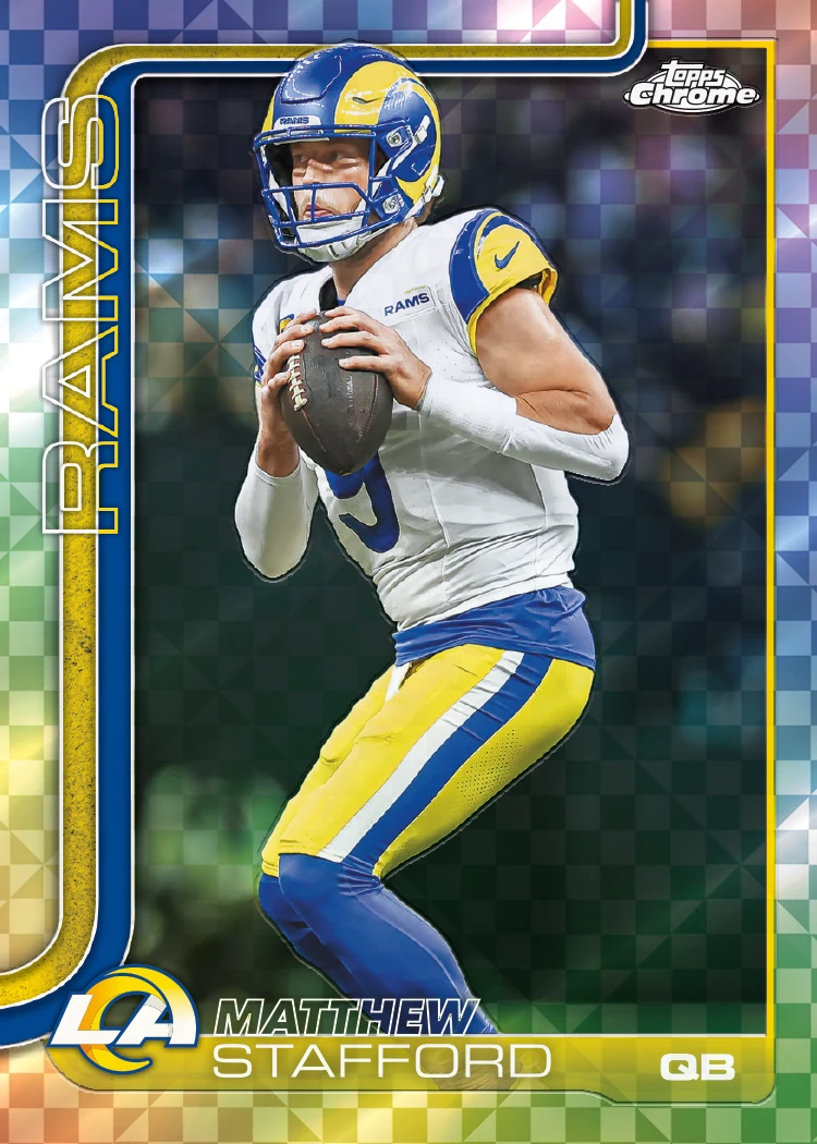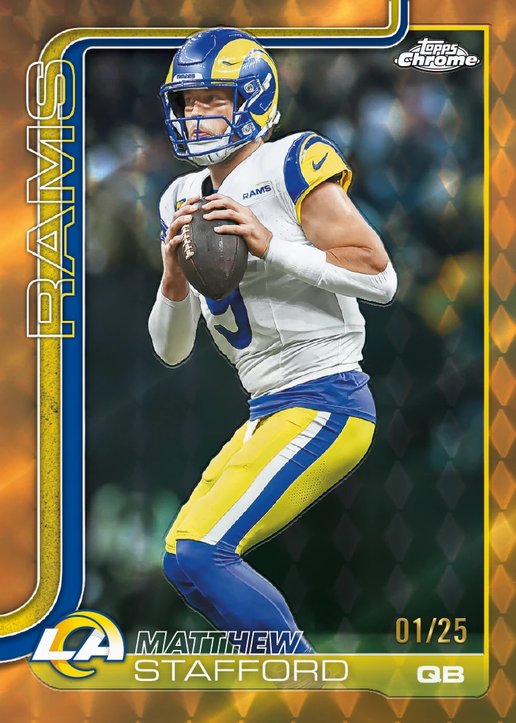 - The National Football League announced Matthew Stafford as the 2025 season MVP. His 2025 Topps Chrome base and base parallel cards will be eligible for the buyback program. For a full list of the eligible cards, see the table above.