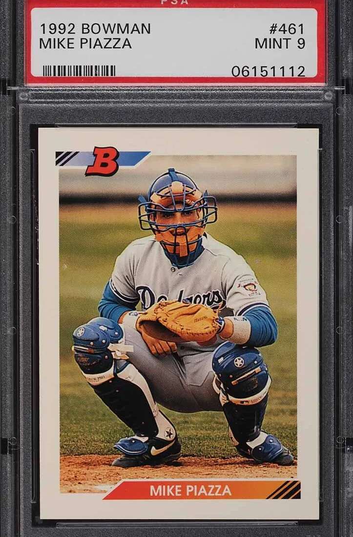 Mike Piazza’s 1992 Bowman rookie card (#461) is a modern classic, celebrated for its rarity and value. Known for his powerful bat, Piazza is the all-time home run leader among catchers. Drafted as a long shot, his rise to stardom with the Dodgers and Mets remains an incredible story.