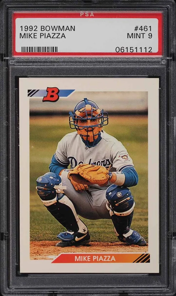 Mike Piazza’s 1992 Bowman rookie card (#461) is a modern classic, celebrated for its rarity and value. Known for his powerful bat, Piazza is the all-time home run leader among catchers. Drafted as a long shot, his rise to stardom with the Dodgers and Mets remains an incredible story.