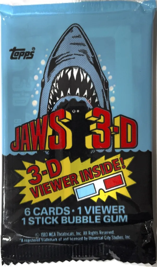 Jaws 3-D likely isn’t a movie you stop on as a “must watch” while scrolling through the streaming menus. But holy cow, what a great set of cards it spawned.