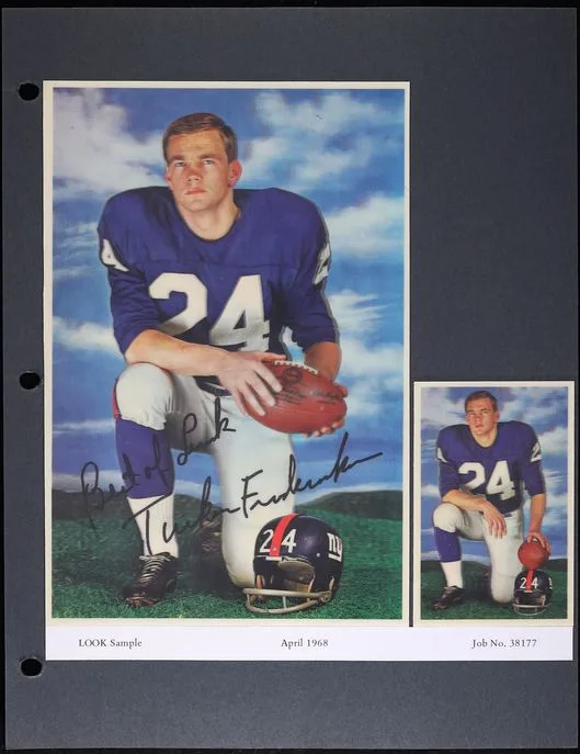 In 1970, Xograph used the 3-D technology to put out a football set. The cards are relatively common; it was released widely—it acts like a normal, fun set would. But in the front of the binder, Andy and Cory noticed two Tucker Frederickson cards—“a big one and a small one.” The small one had sold a couple copies in previous years, but they believe the big one—after exhaustive research on the cards, which included contacting a 3-D cards “guru” in New York—has never been seen before.