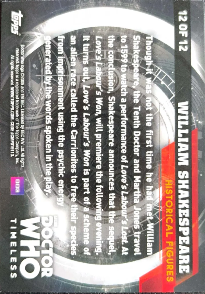 Dipping into the Doctor Who lore once again, Shakespeare also has a card in this 2016 set.