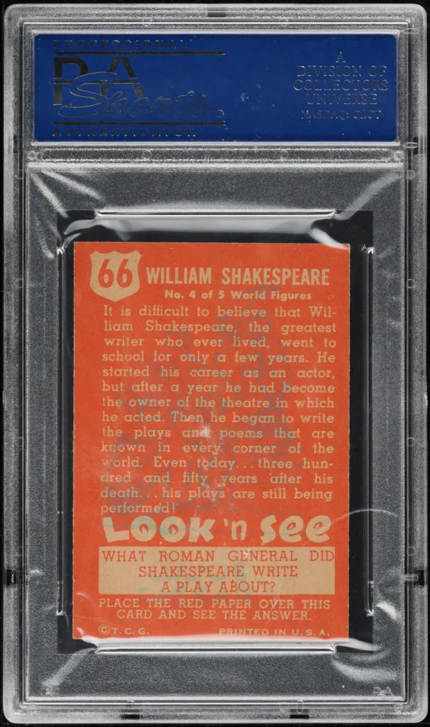1952 Topps Look ‘N See #66 William Shakespeare
