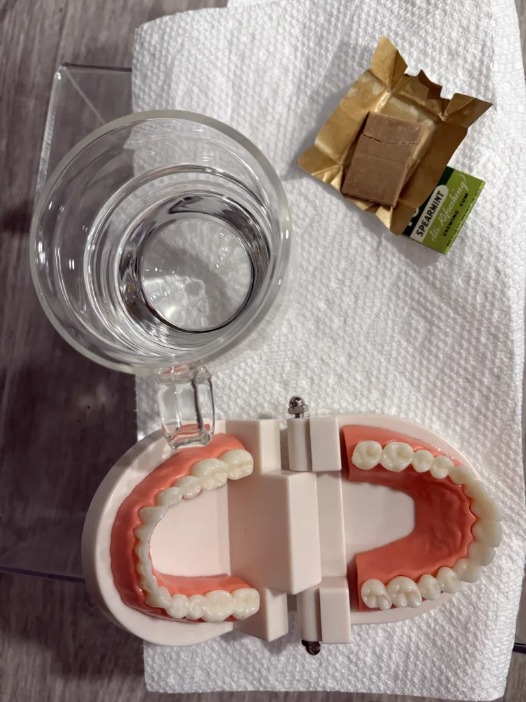 Instead, I ordered two “dental models” with a plan: I’d soak the gum in water for a few minutes and wet the models, then “chew” the gum using the fake teeth like a bizarro puppet and what would might happened to my own teeth.