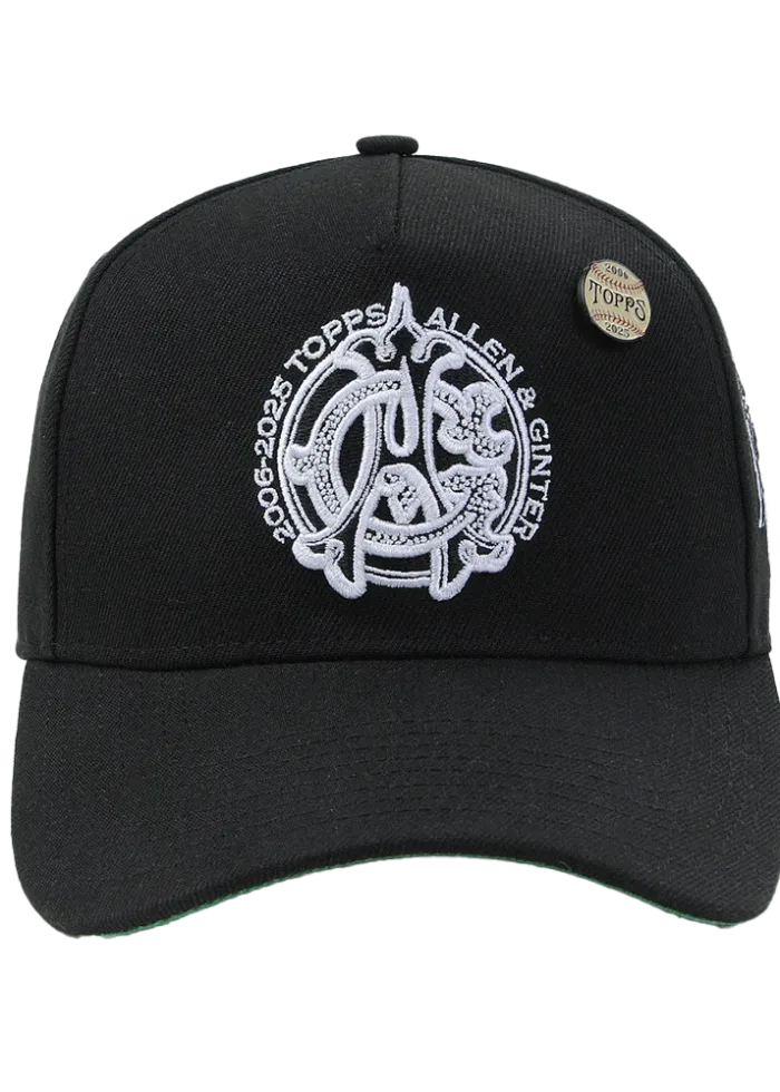Structured 5-panel design with raised A&G embroidery, mock wool texture, green undervisor, and collector pin detailing.