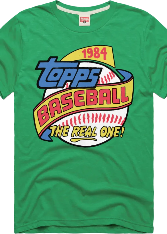 The Topps 1981 Black Tee and Topps 1984 Green Tee revisit pack-opening nostalgia through vintage graphics and tri-blend construction.