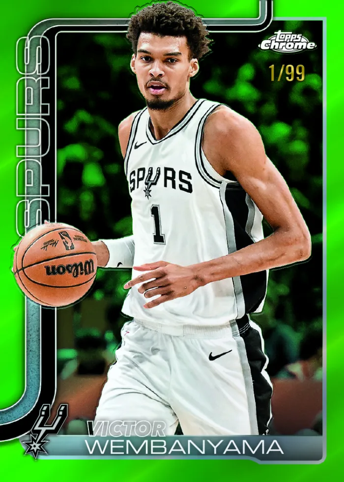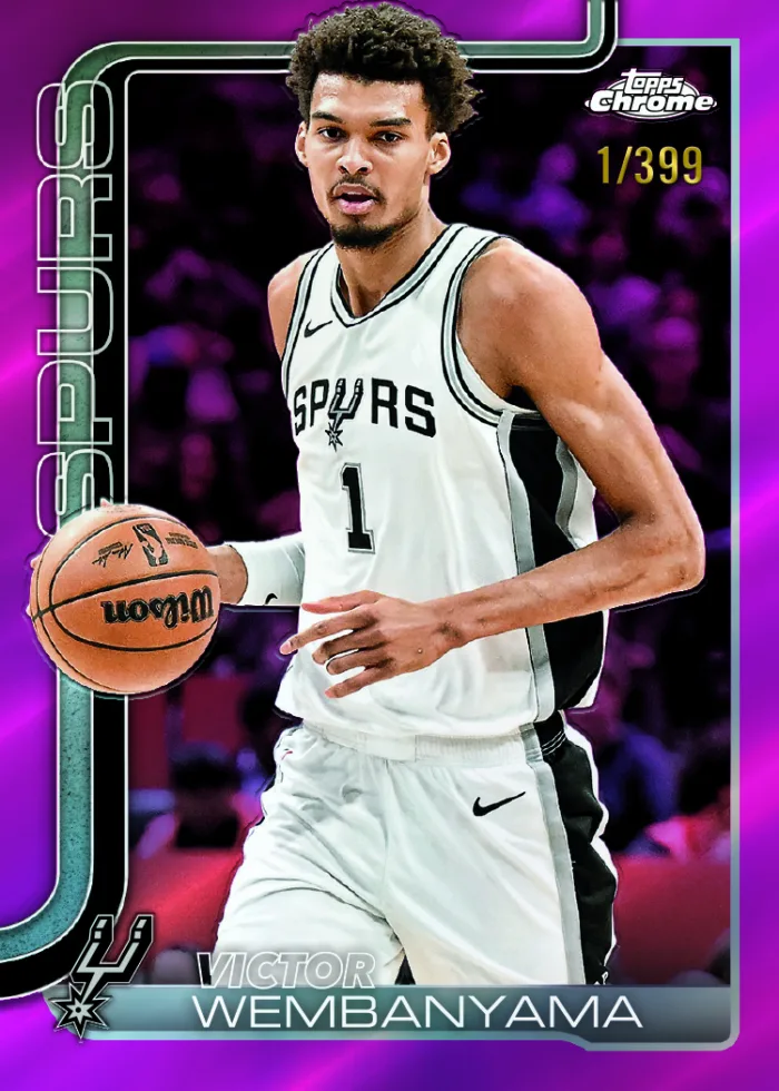 The 2025-26 Topps Chrome® Basketball base set boasts 299 cards of the NBA’s top rookies, current stars, and legendary icons.