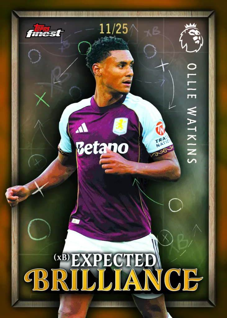 Inspired by the xG phenomenon that has swept across the soccer world, (xB) Expected Brilliance leaves its mark on Topps Finest Premier League 2026. The unique chalkboard design delivers that classic Finest feel.