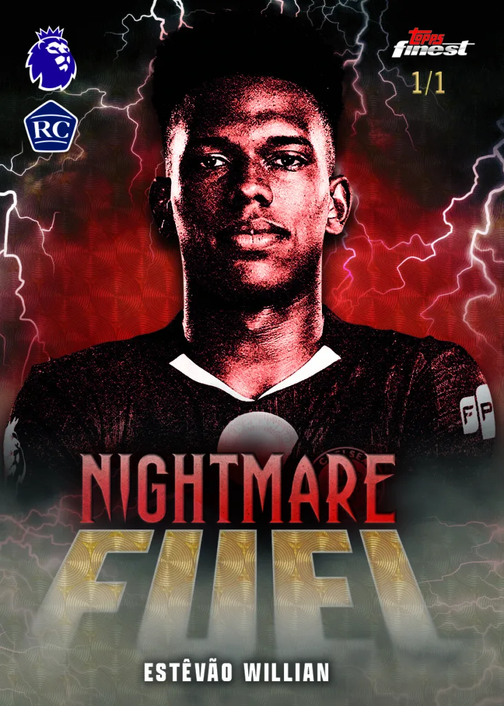 Nightmare Fuel brings collectors attacking talents who cause even the world’s best defenders to lose sleep. A lightning design that bolts out of the hand, this case hit features chase rookie Estêvão Willian.