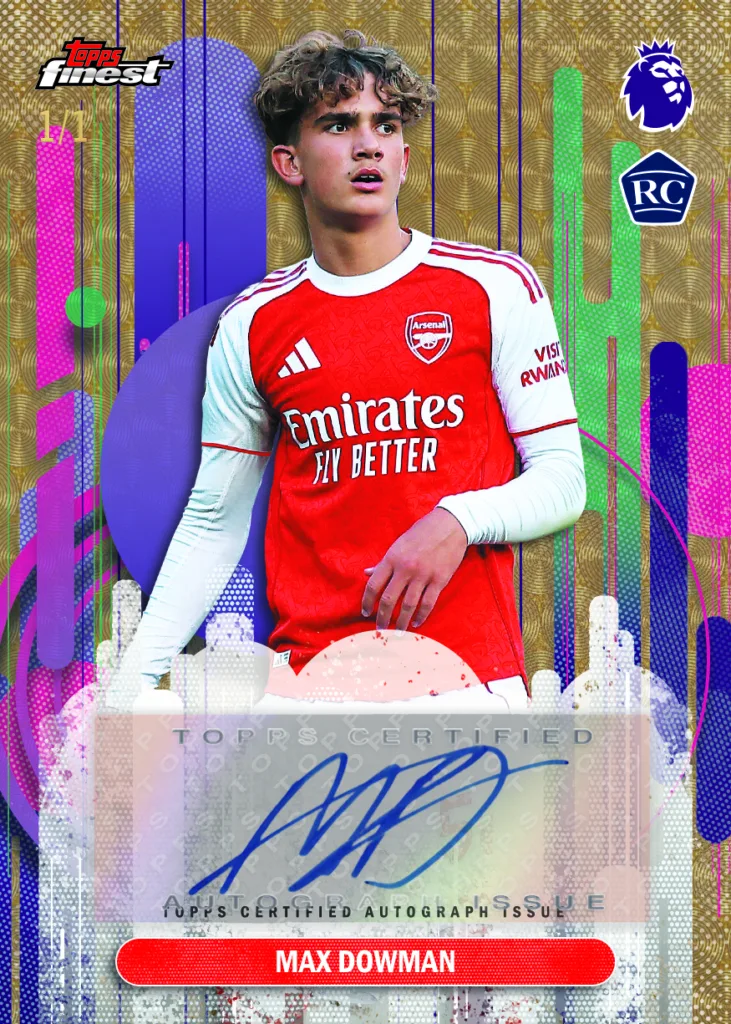 Arrivals is an insert that celebrates beginnings, and the class of Topps Finest Premier League 2026 is loaded. Manchester United prodigy Shea Lacey is joined by phenom Max Dowman and Liverpool talent Rio Ngumoha. All three chase rookies bring the ink to an insert that announces the arrival of the next generation.