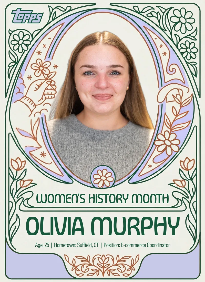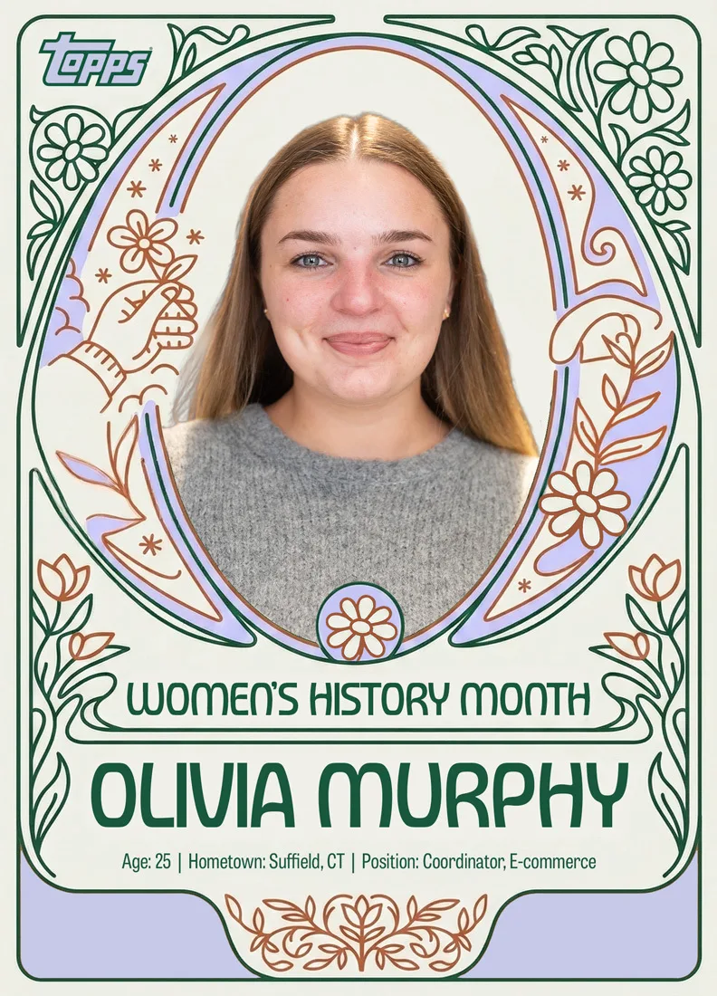At the intersection of product, performance, and customer experience, Olivia Murphy plays a key role in how collectors engage with Topps online. As an E-Commerce Coordinator, she helps bring product launches to life, ensuring that every release is accurate, seamless, and built to perform. Olivia’s path into The Hobby reflects a broader evolution within the industry, where diverse skill sets and fresh perspectives are helping shape the future of collecting. This Women’s History Month, her story highlights the impact of women working behind the scenes to elevate how The Hobby is experienced in real time.