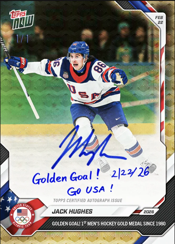 2. Which Topps NOW card sold more copies: Jack Hughes’ 2026 Olympics “Golden Goal” or Pope Leo’s 2025 “1st American Pope”?