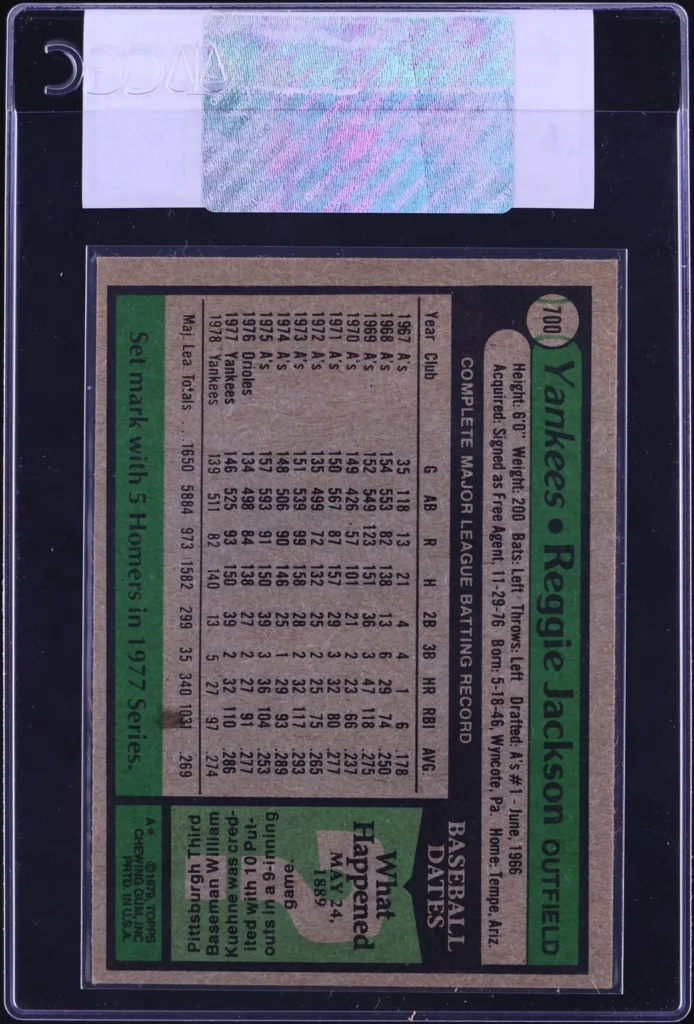 1. His 1979 Topps card, which plainly notes that he “set mark with 5 homers in 1977 Series”