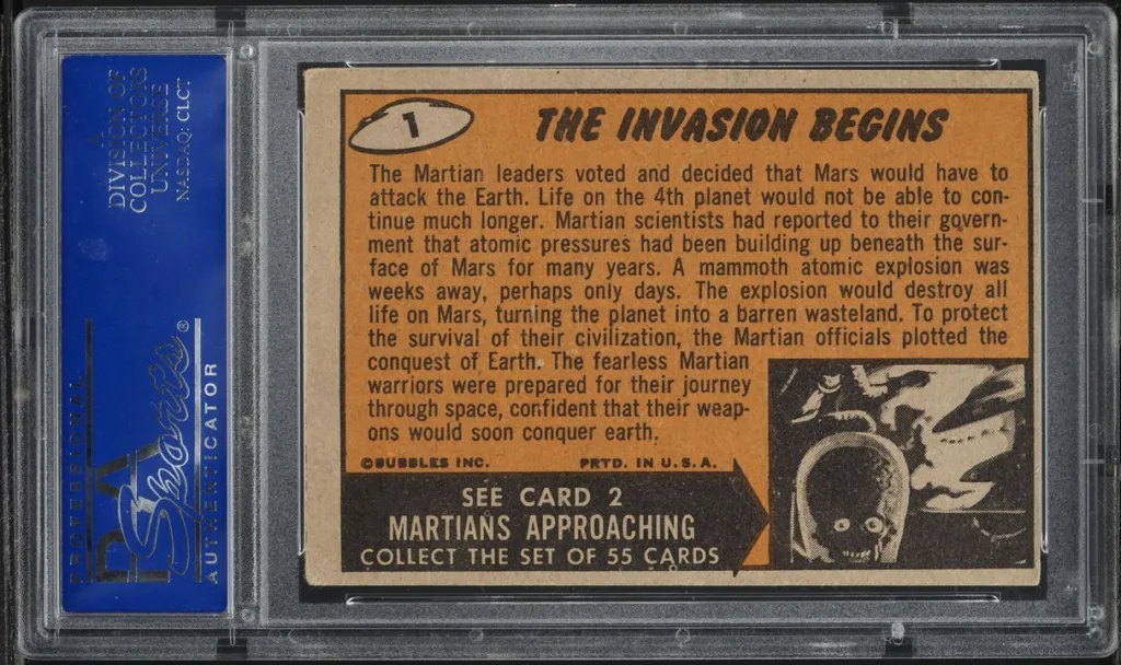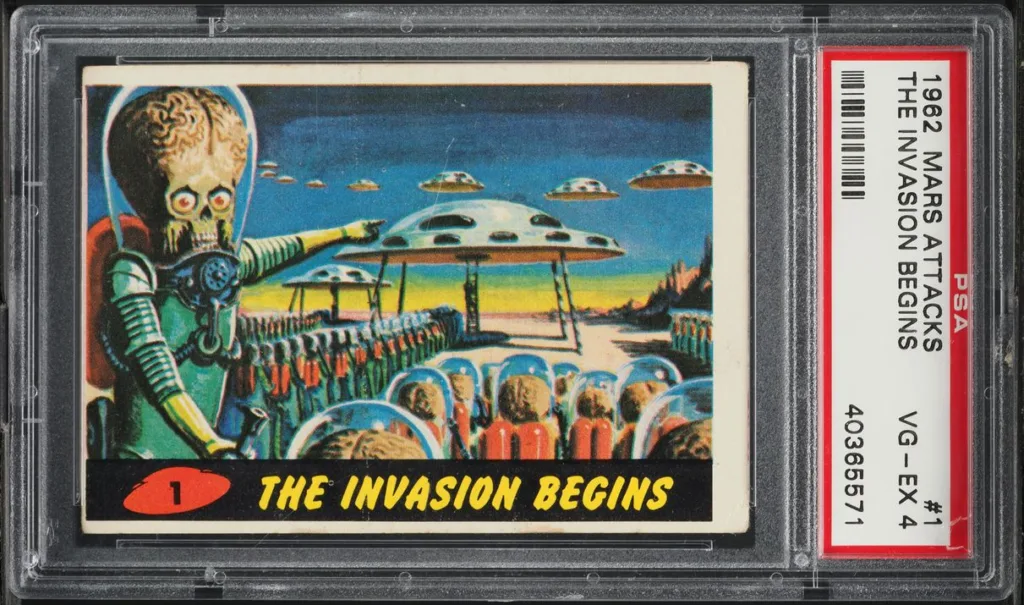 6. On card #1 of the 1962 Mars Attacks set, what was the somewhat sympathetic reason the invasion of Earth actually began?
