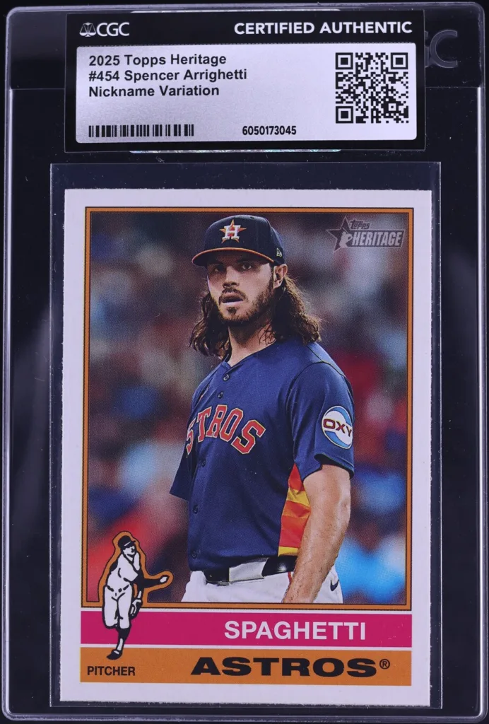 9. Spencer Arrighetti’s 2025 Topps Heritage “Nickname Variation”