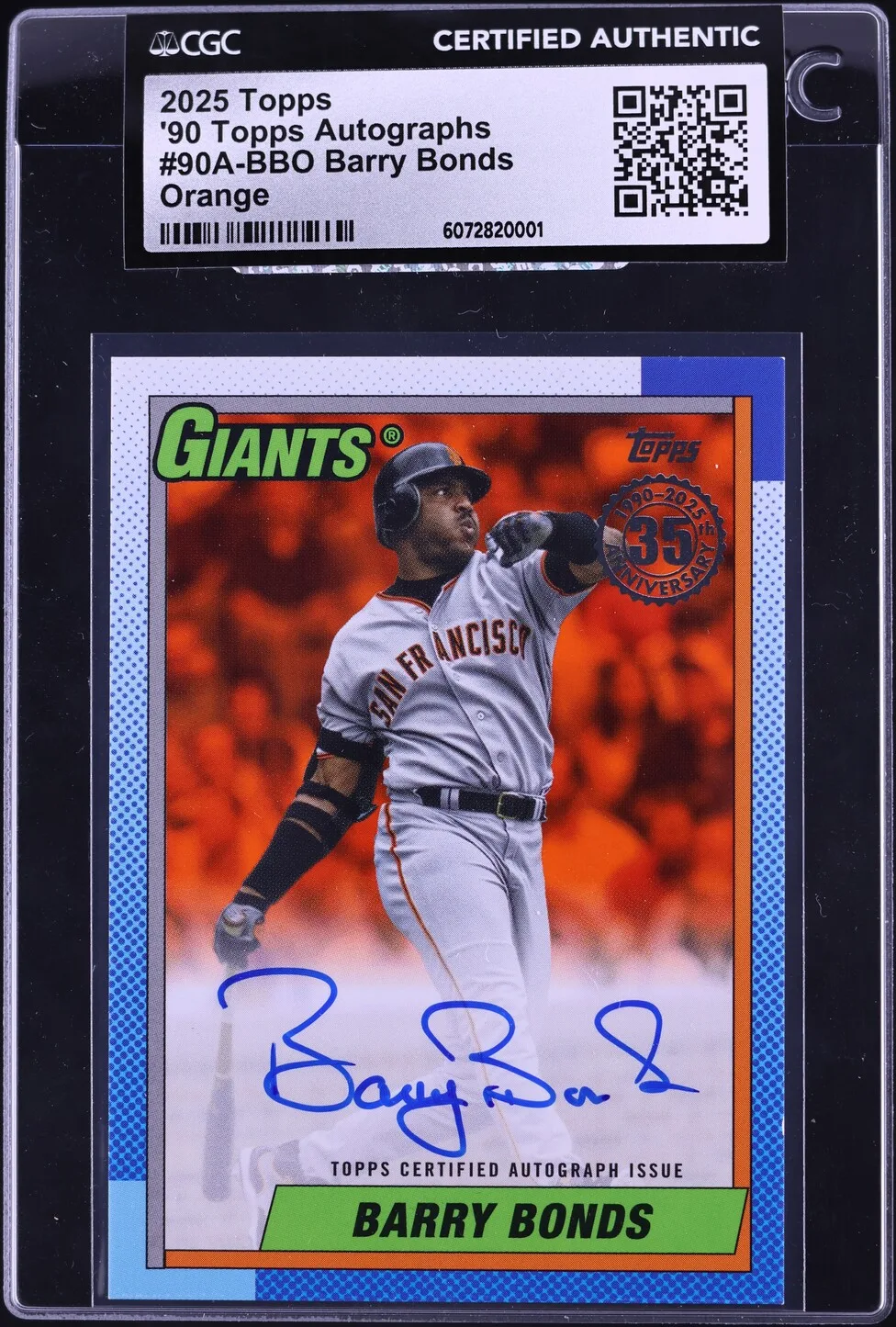 2025 Topps Series 1 Baseball 1990 Topps Baseball Autographs #90A-BBO Barry Bonds Orange Auto /25